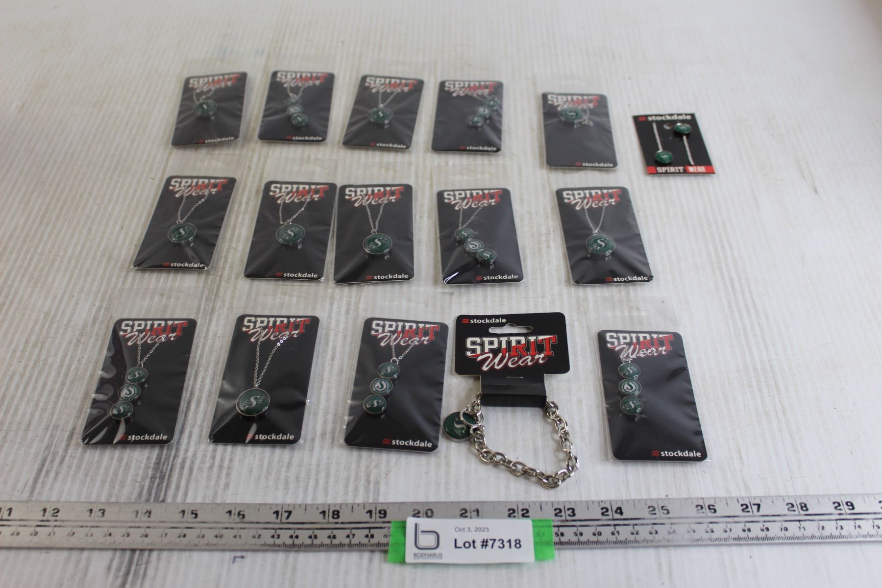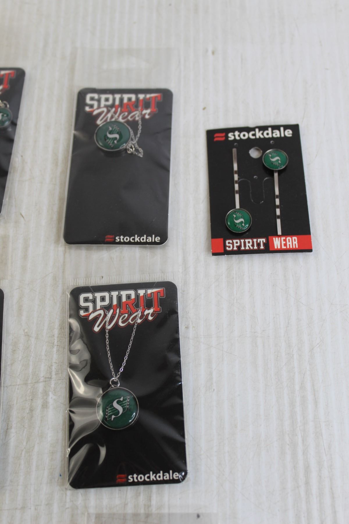 (16) Pieces of Saskatchewan Roughrider Merch - Necklaces, Bracelet, Bobby Pins (NIB)