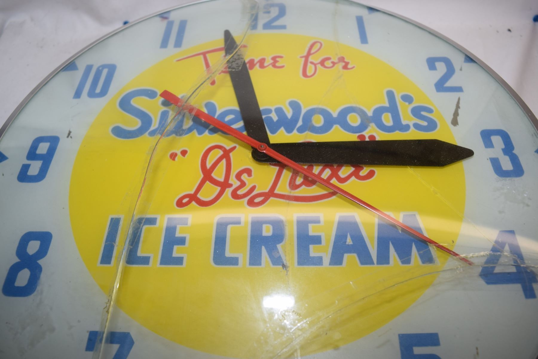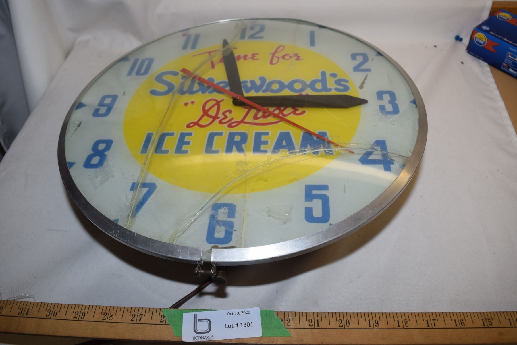 16" Silverwood Ice Cream Clock Working & Lights Up