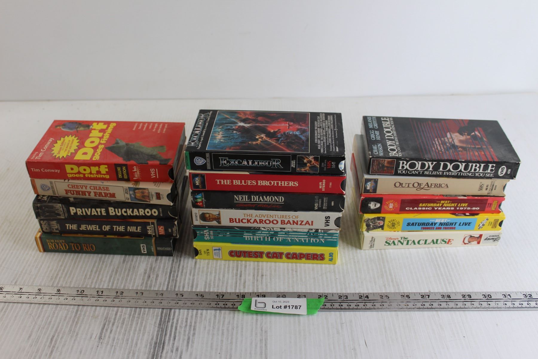 (16) VHS Tapes - Funny Farm, The Blues Brothers, The Santa Clause, Dorf Goes Fishing