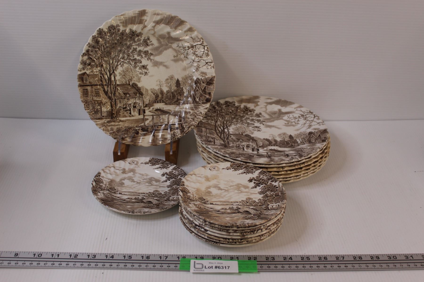 (17) 9 - Ridgeway of Staffordshire "Country Days" Dessert Plates & 8 - Johnson Bros. Cotswold Dinner Plates
