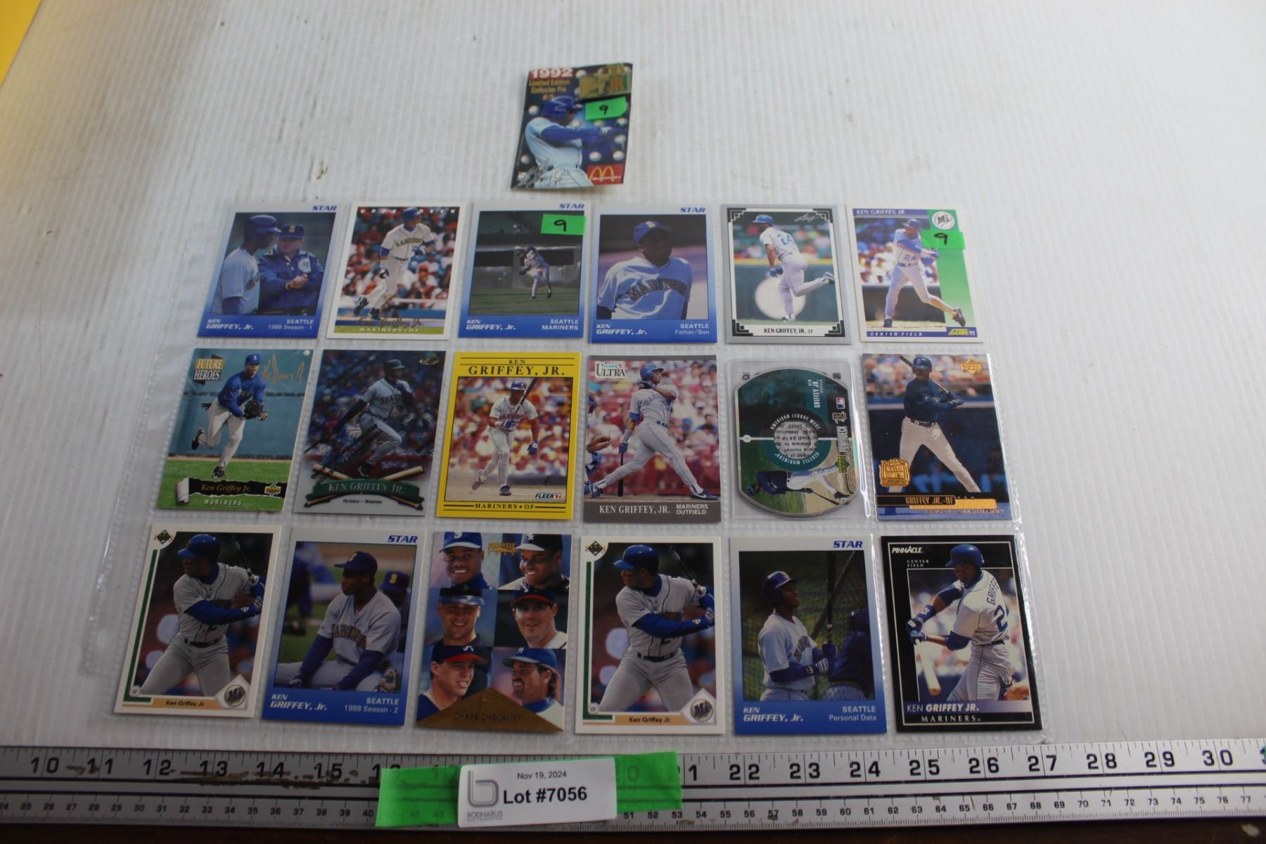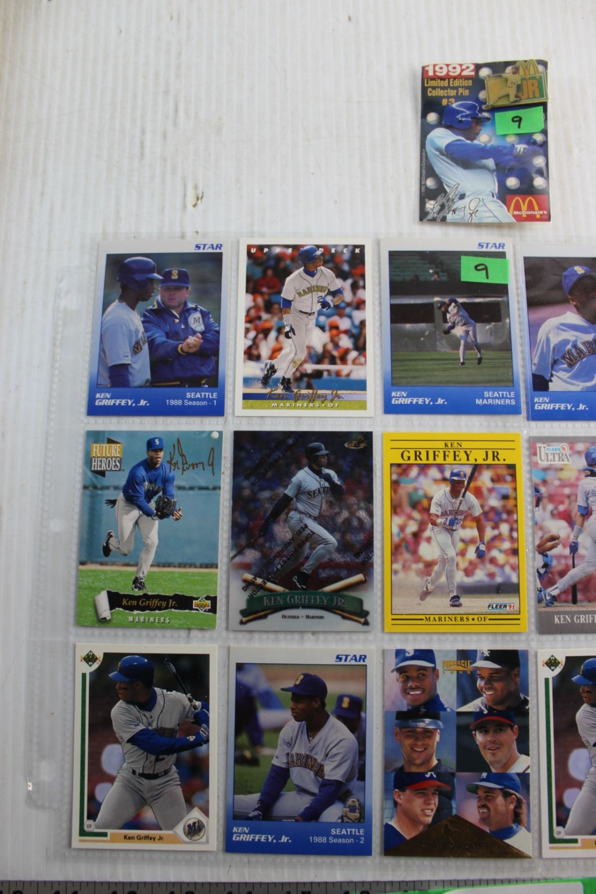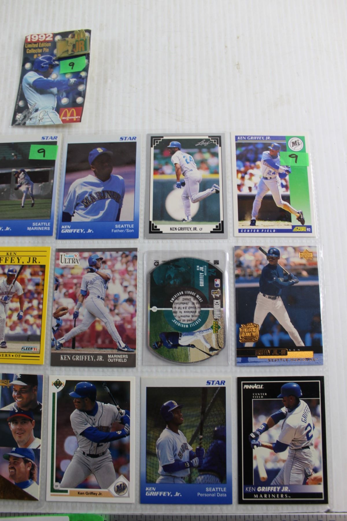 (18) MLB Ken Griffey Jr. Baseball Cards and 1992 McDonalds Limited Edition Collector's Pin