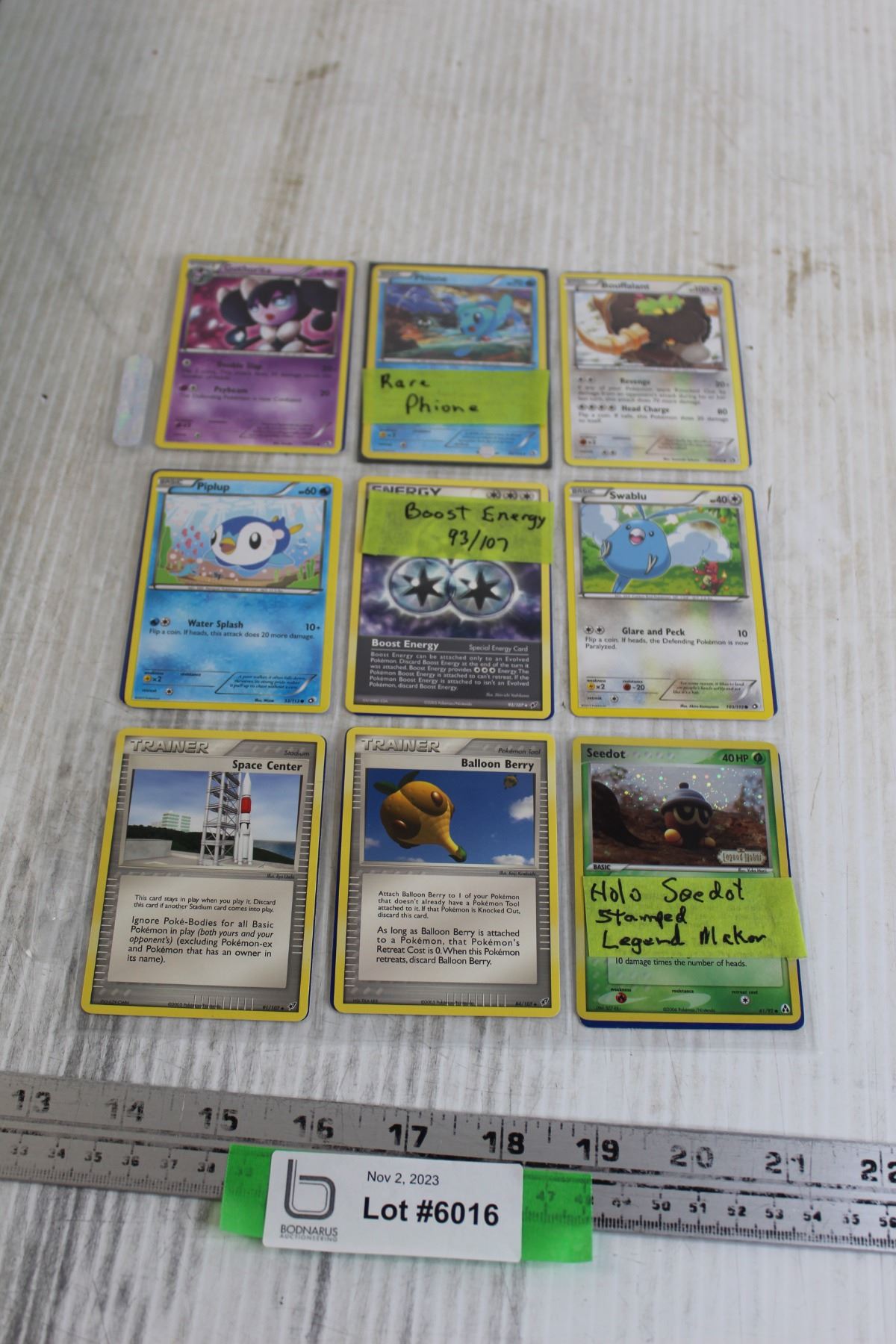 (18) Pokemon Cards - Rare Phione, Boost Energy 93/107, Holo Seedot Stamped Legend Maker