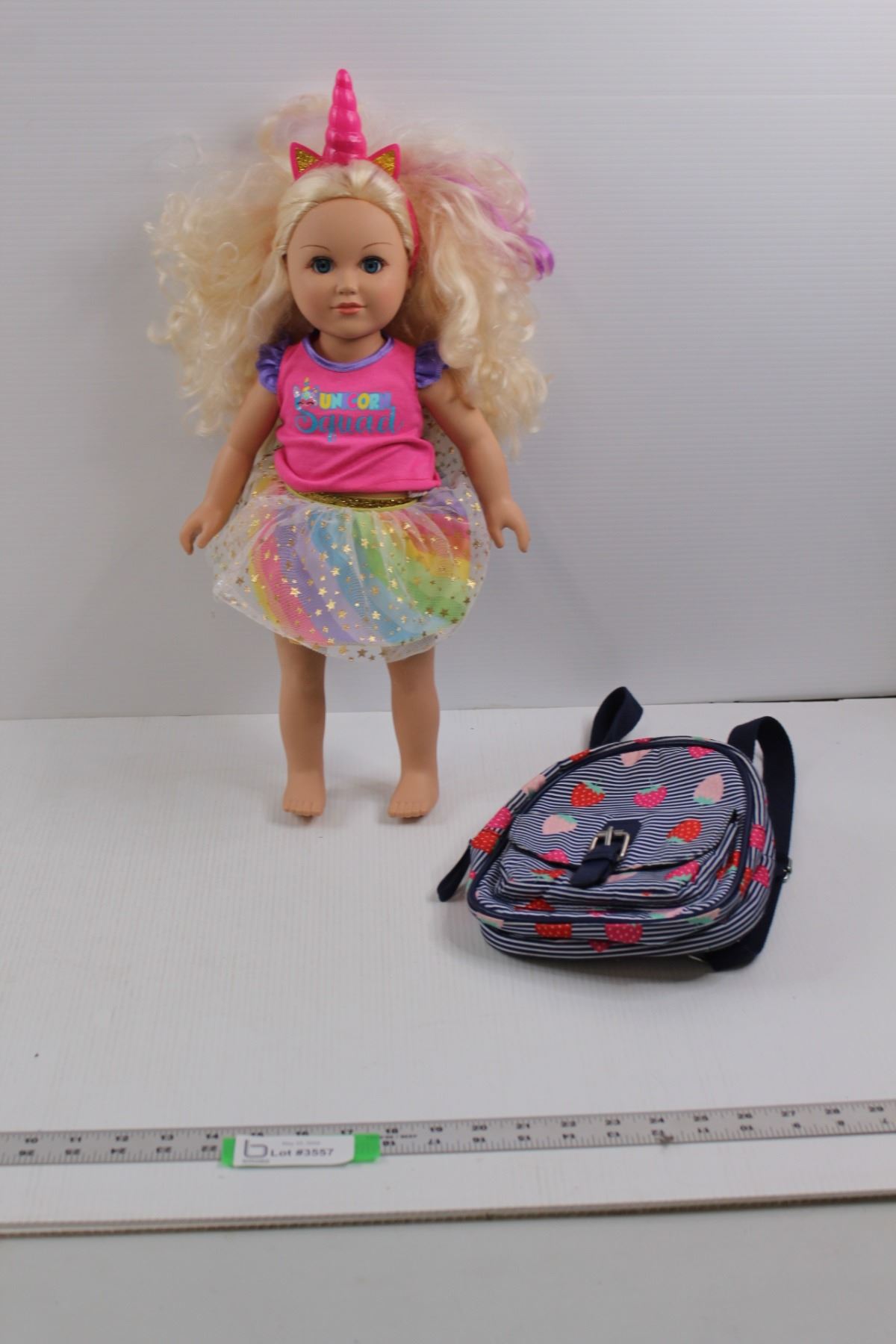 18" "Unicorn Squad" Doll & Clair's Girls Strawberry Backpack