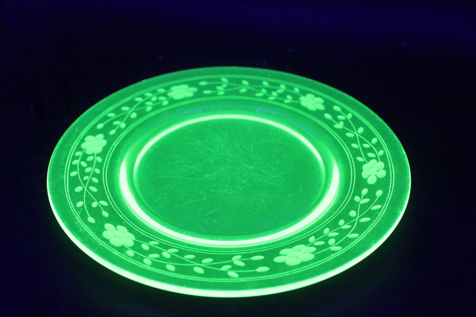 1890's Uranium Glass Victorian "Floral Wheel Cut" 8.75 inch Plate