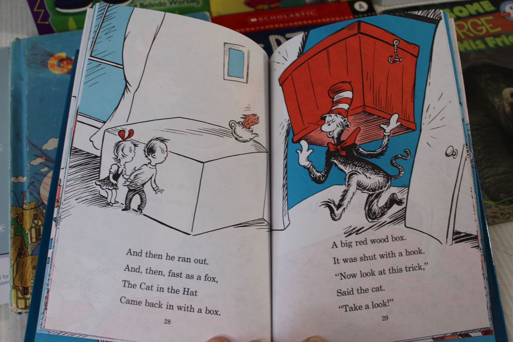 (19) Assorted Kids Books - The Cat in The Hat, Sammy and The Dinosaurs, Too Many Books