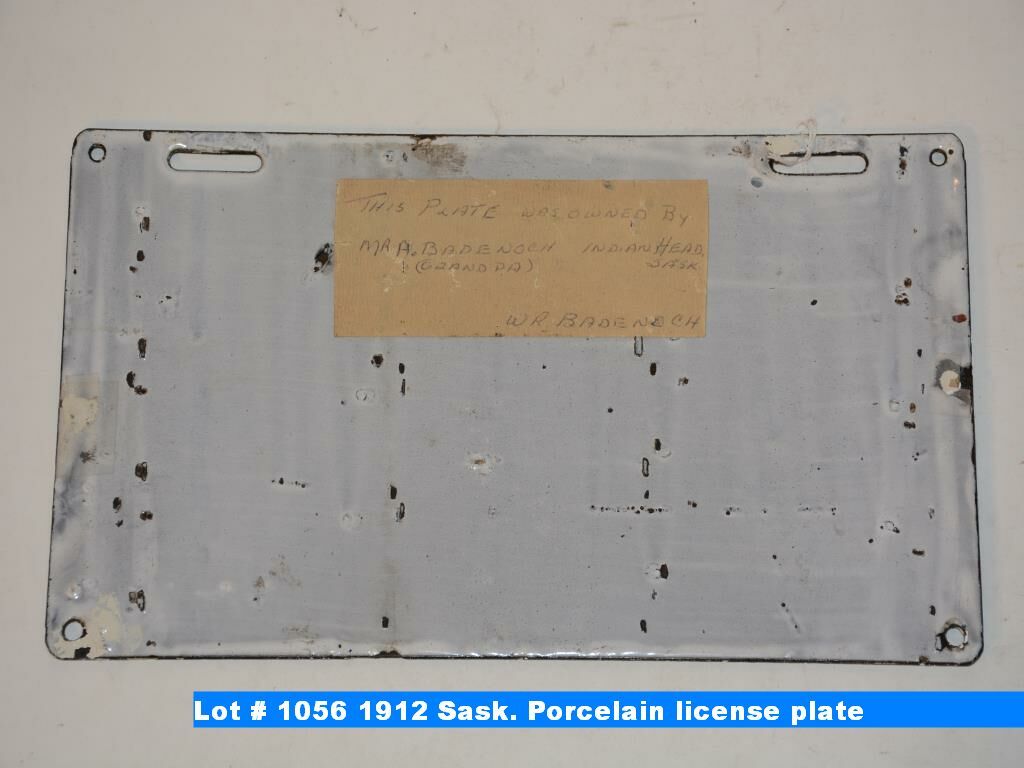1912 Sask. Porcelain license plate