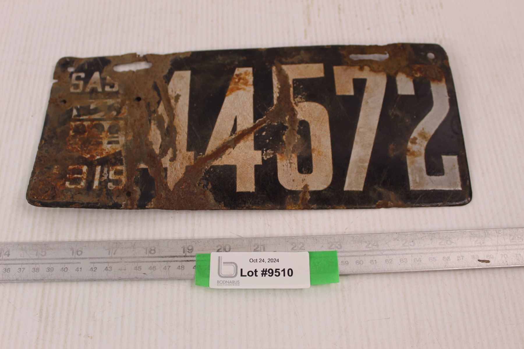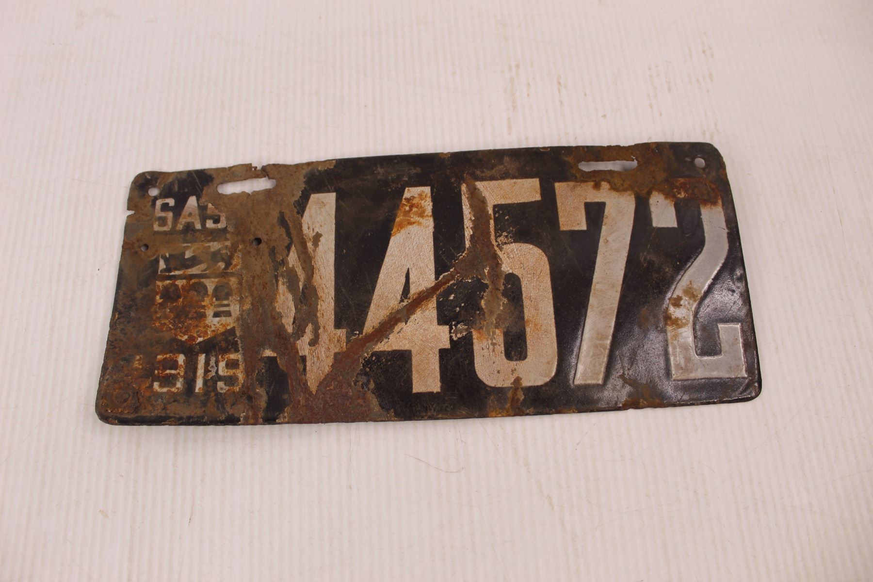 1919 Sask Porcelain License Plate