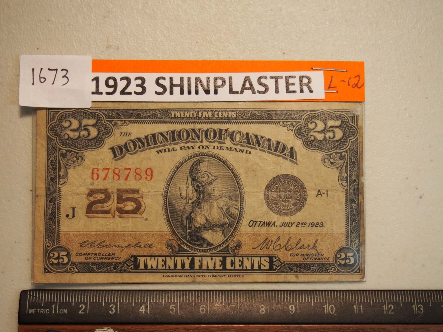 1923 25 cent paper bill; Shinplaster