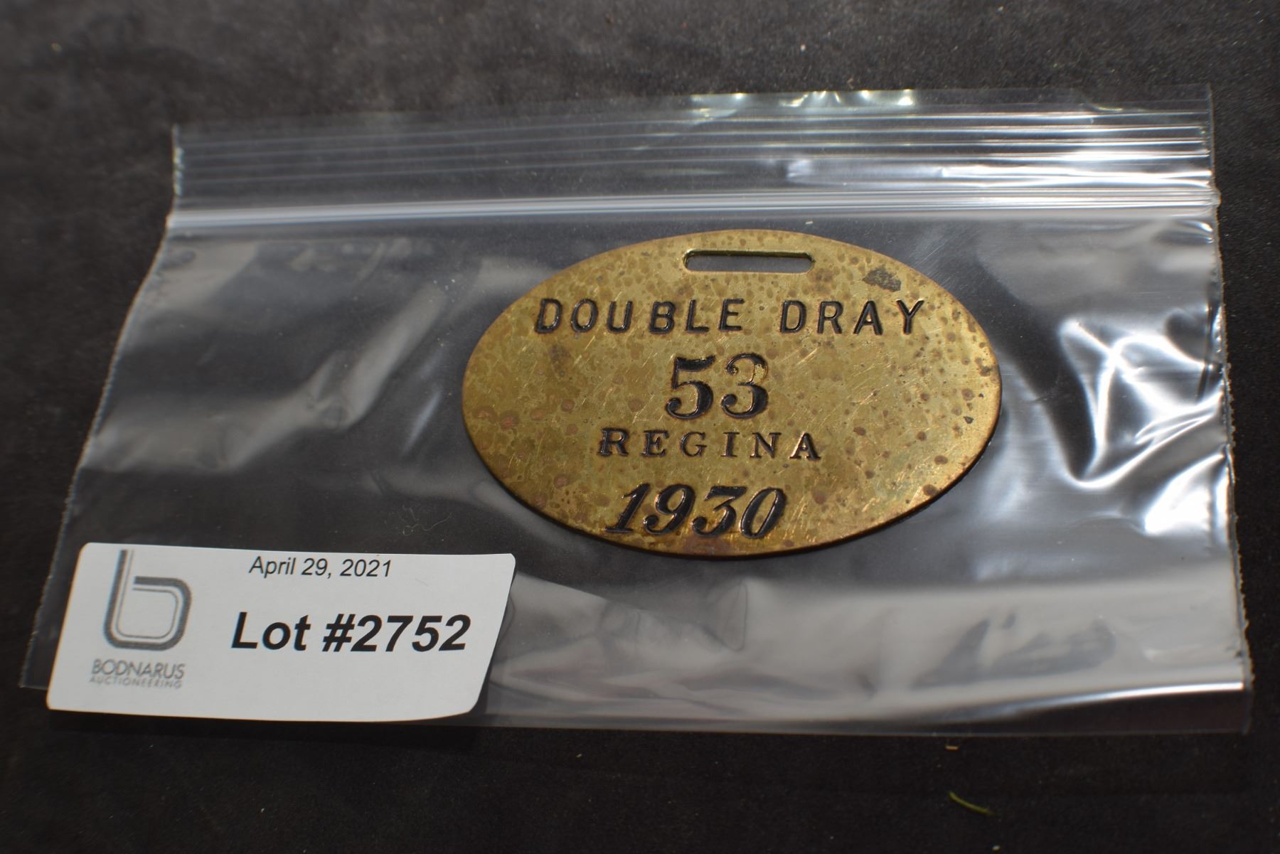 1930 REGINA DOUBLE DRAY LICENSE PLATE BRASS TAG