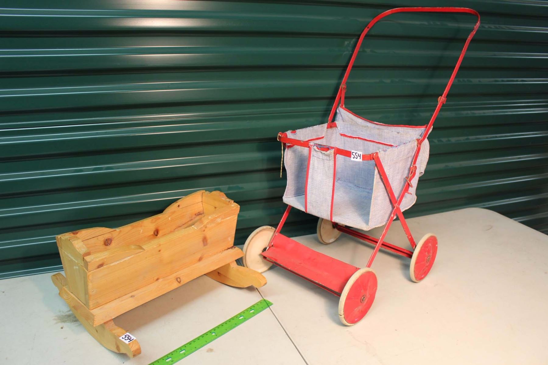 1930s Doll Carriage & A Pine Toy Doll Cradle (Handmade)