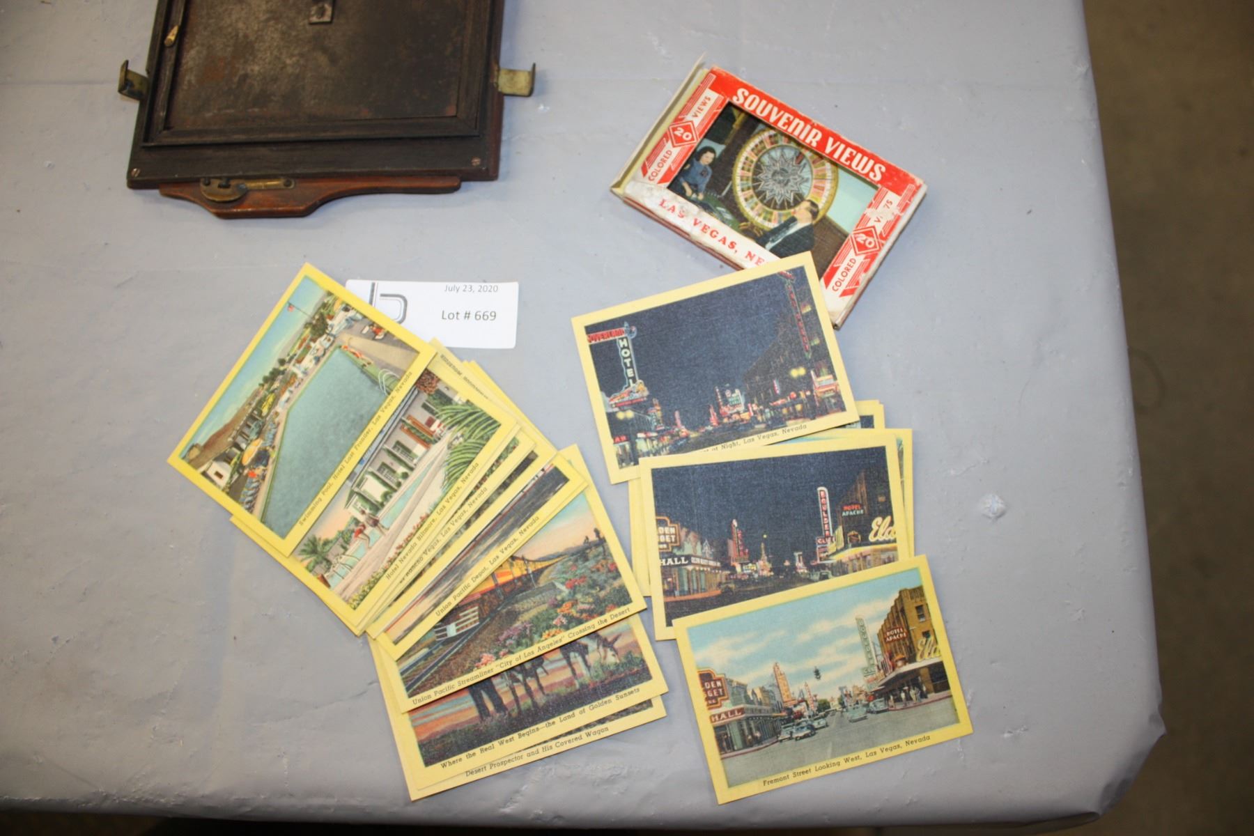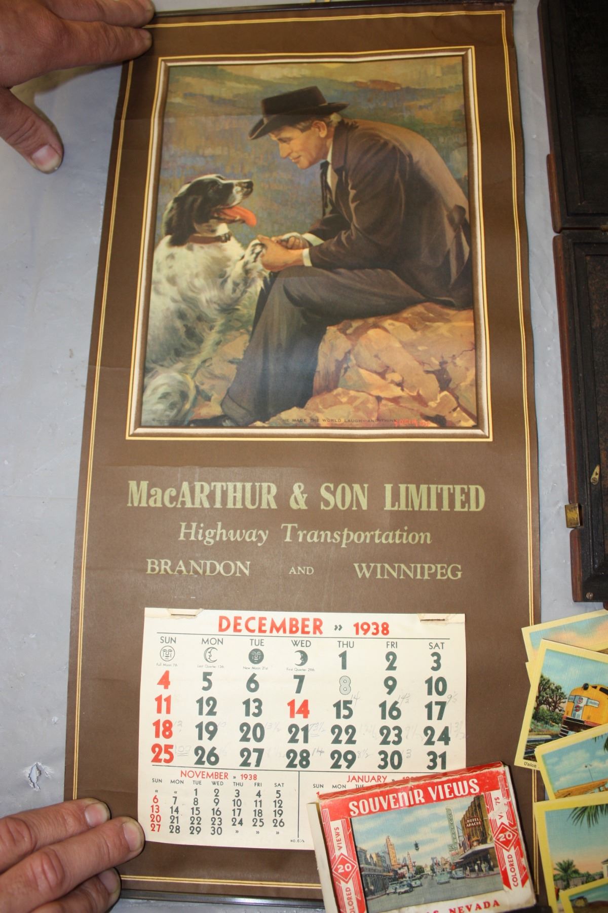 1938 Calendar (MacArthur & Sons Ltd), Wooden Antique Photograph Holder and 1950s Las Vegas Souvenirs