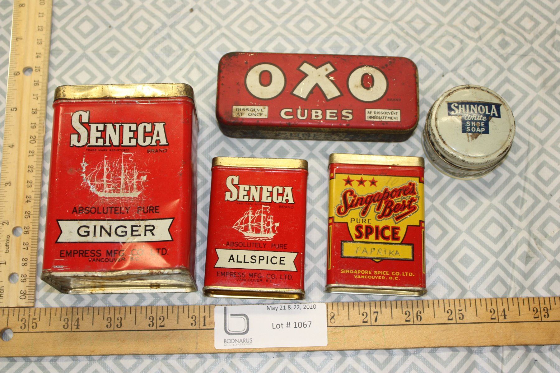 1940s Seneca, Singapores Best, OXO, and Shinola Tins