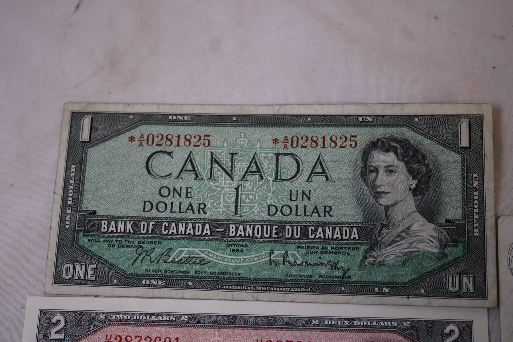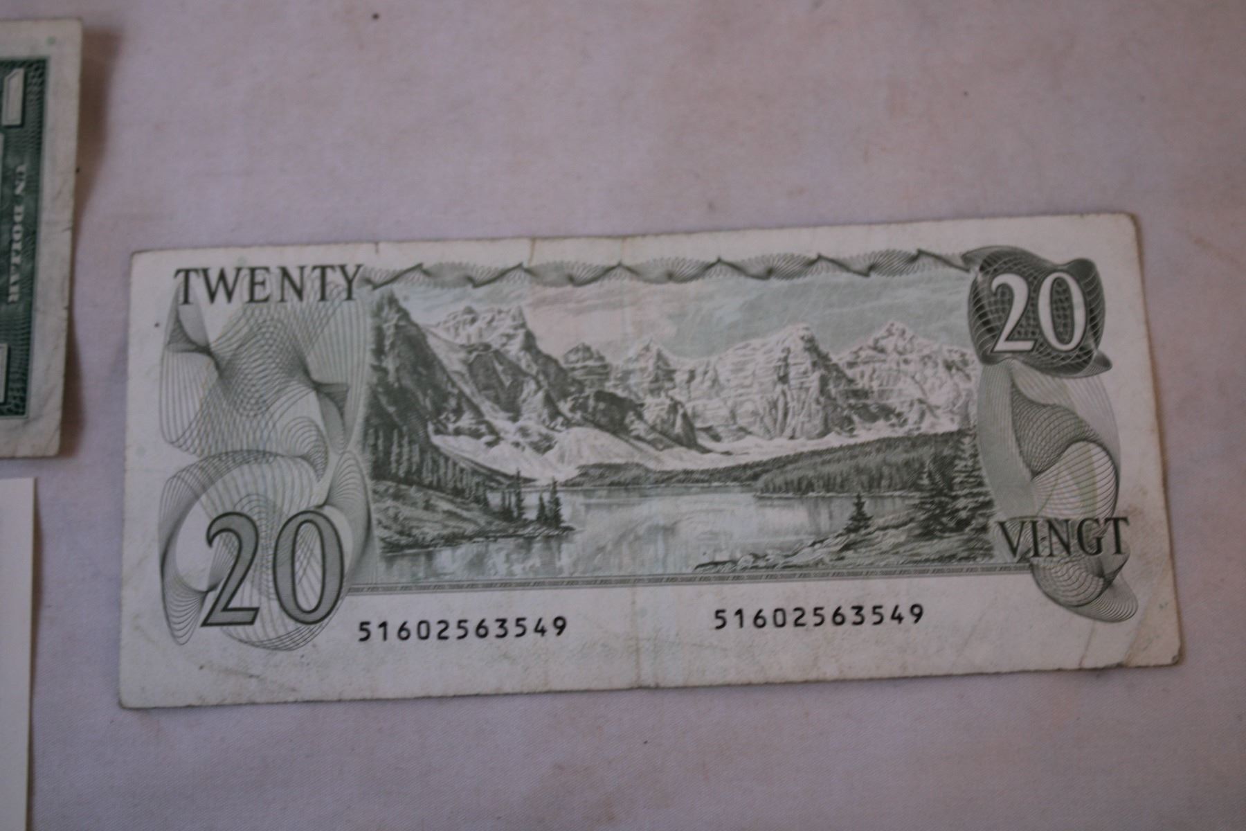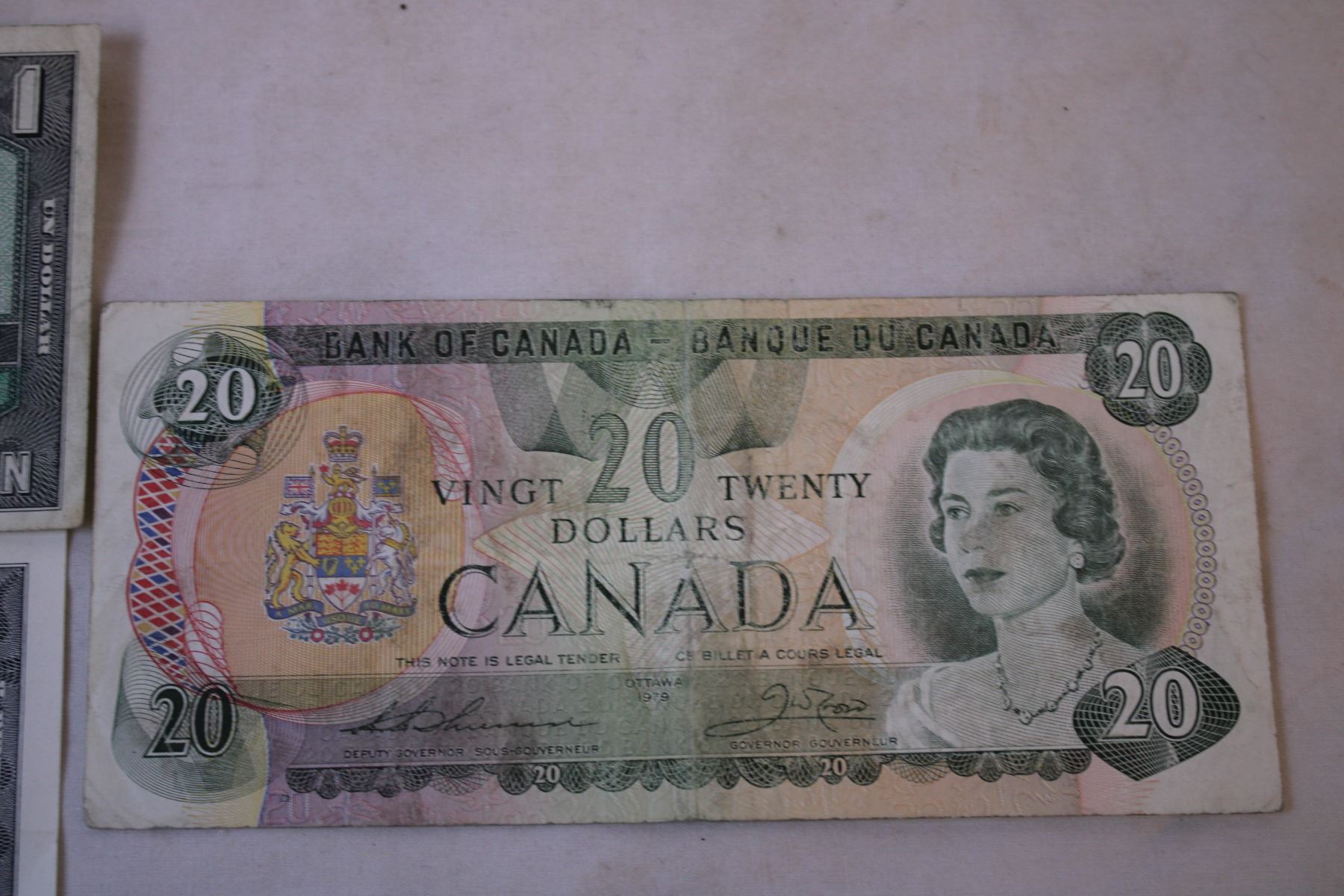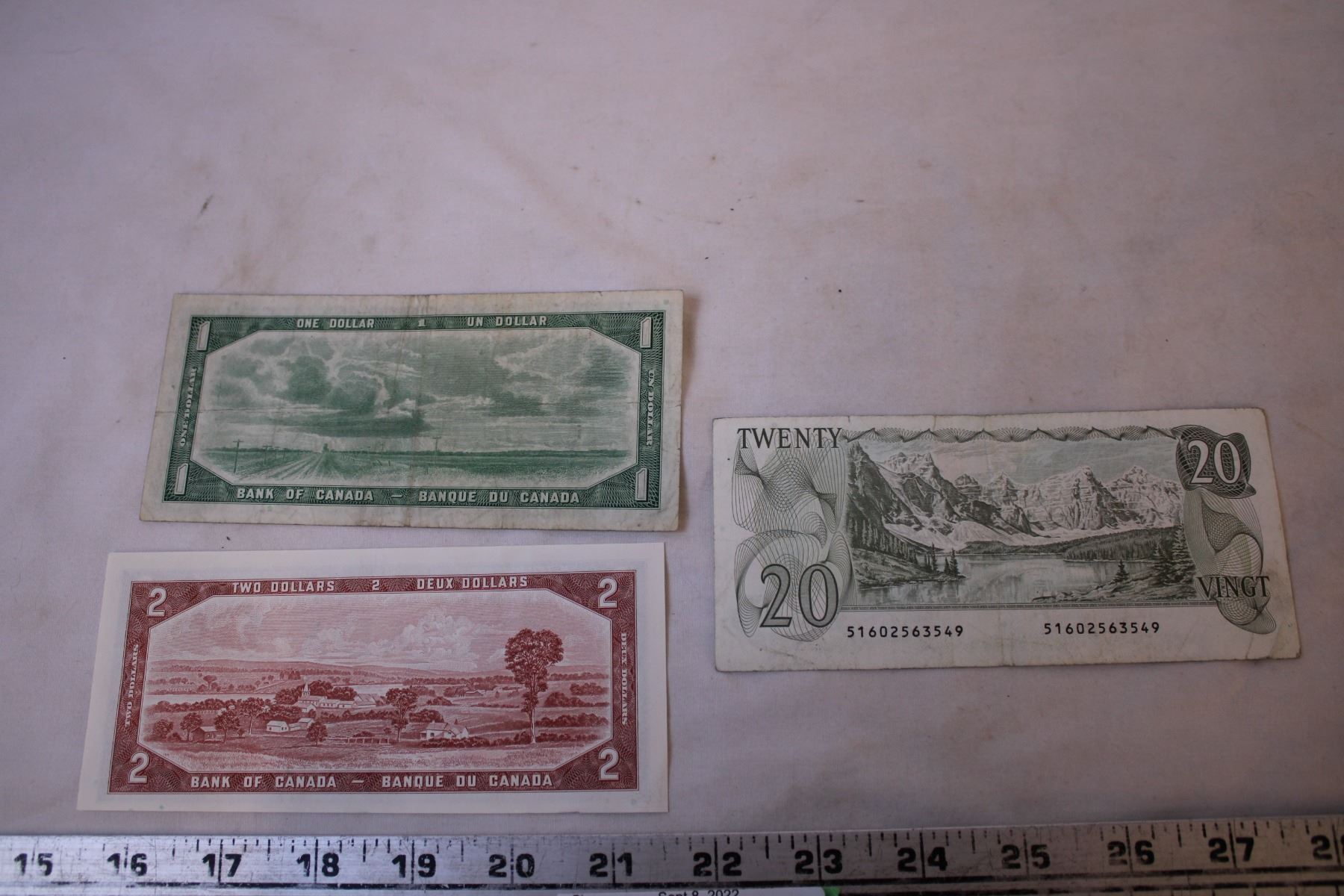 1954 1 and 2 Dollar Bills + 1979 20 Dollar Bill