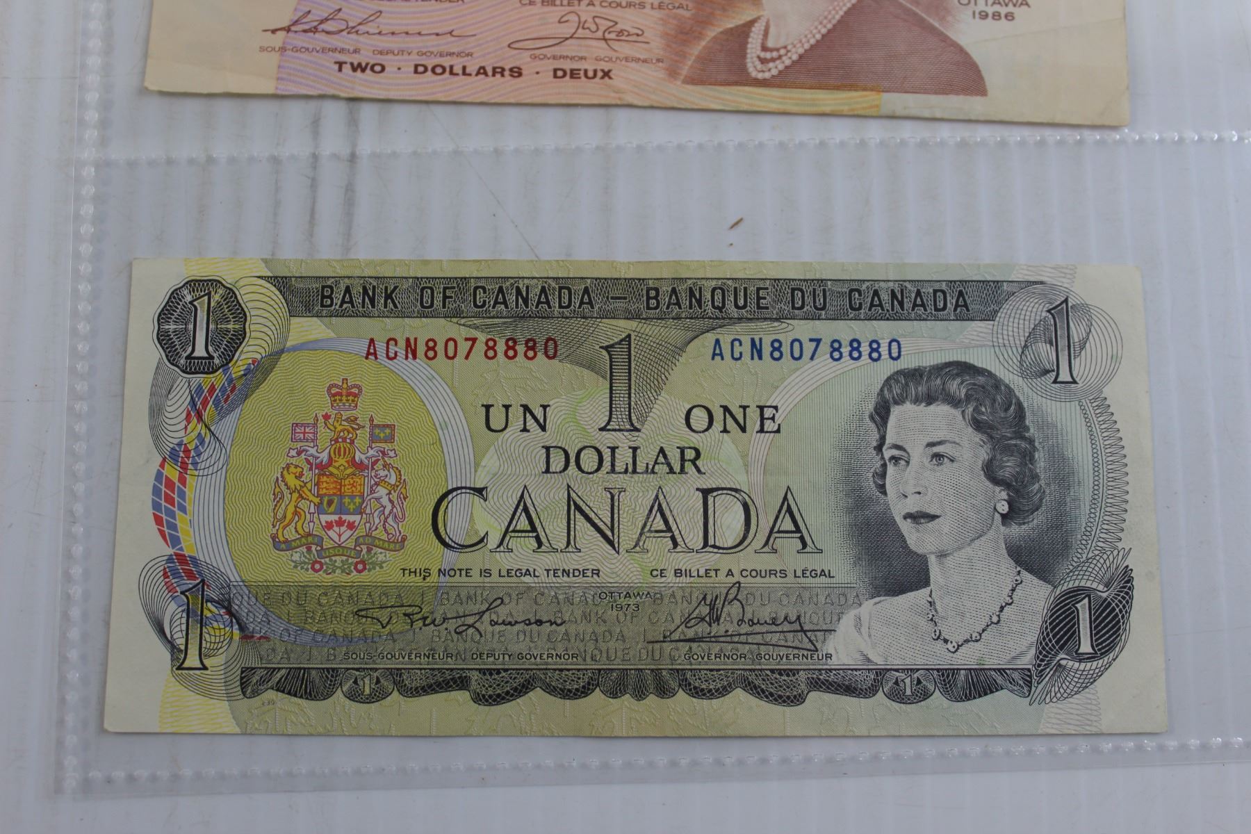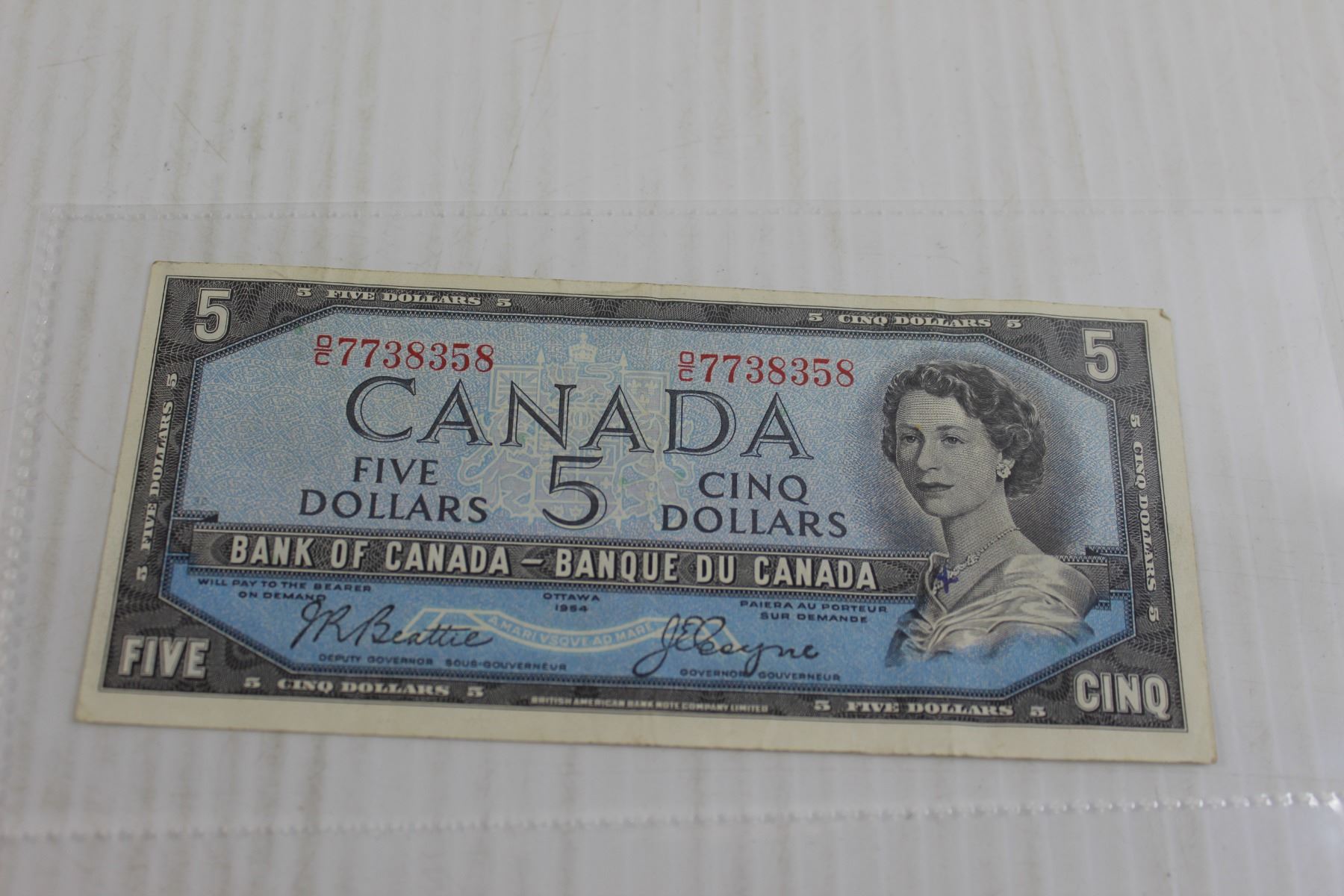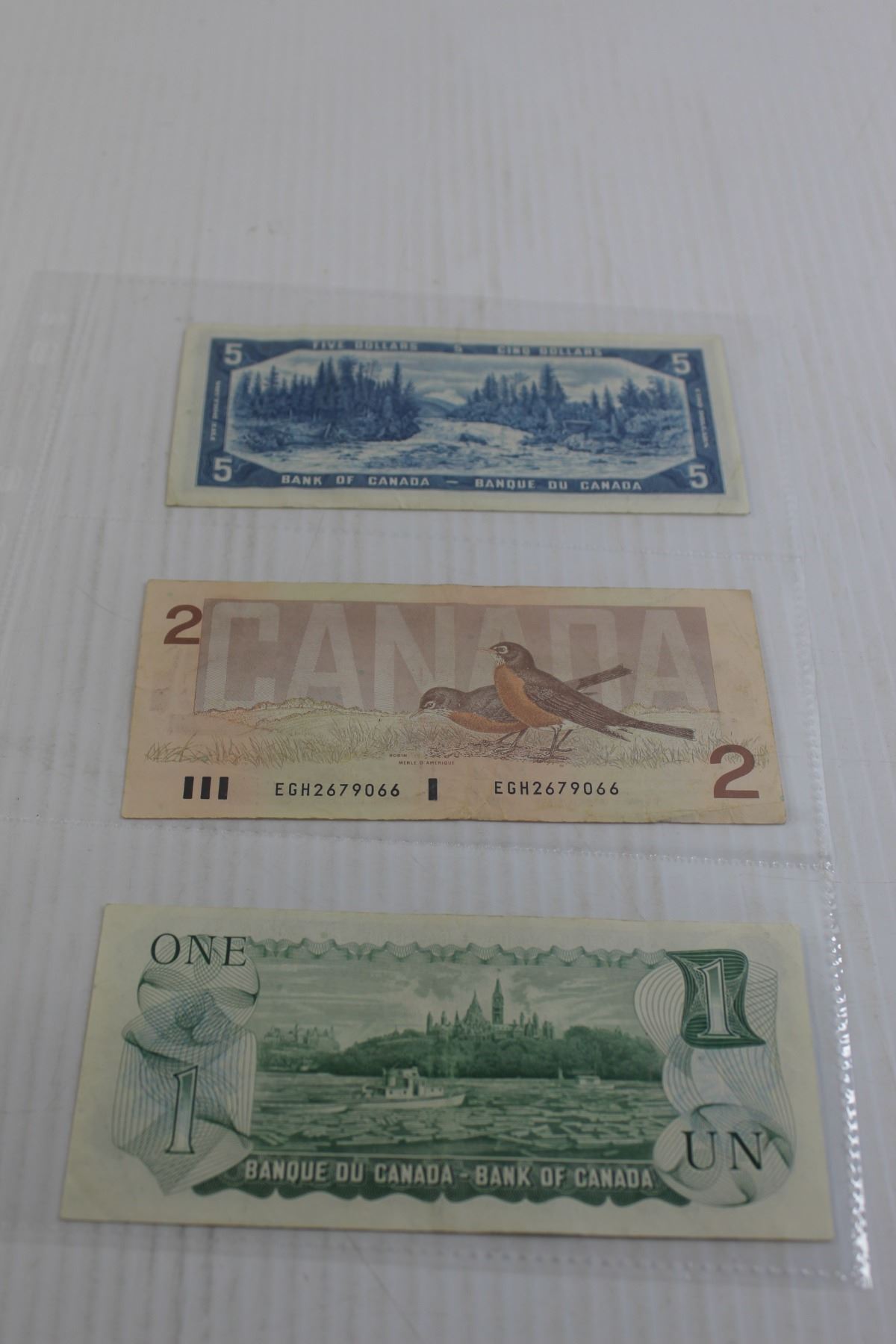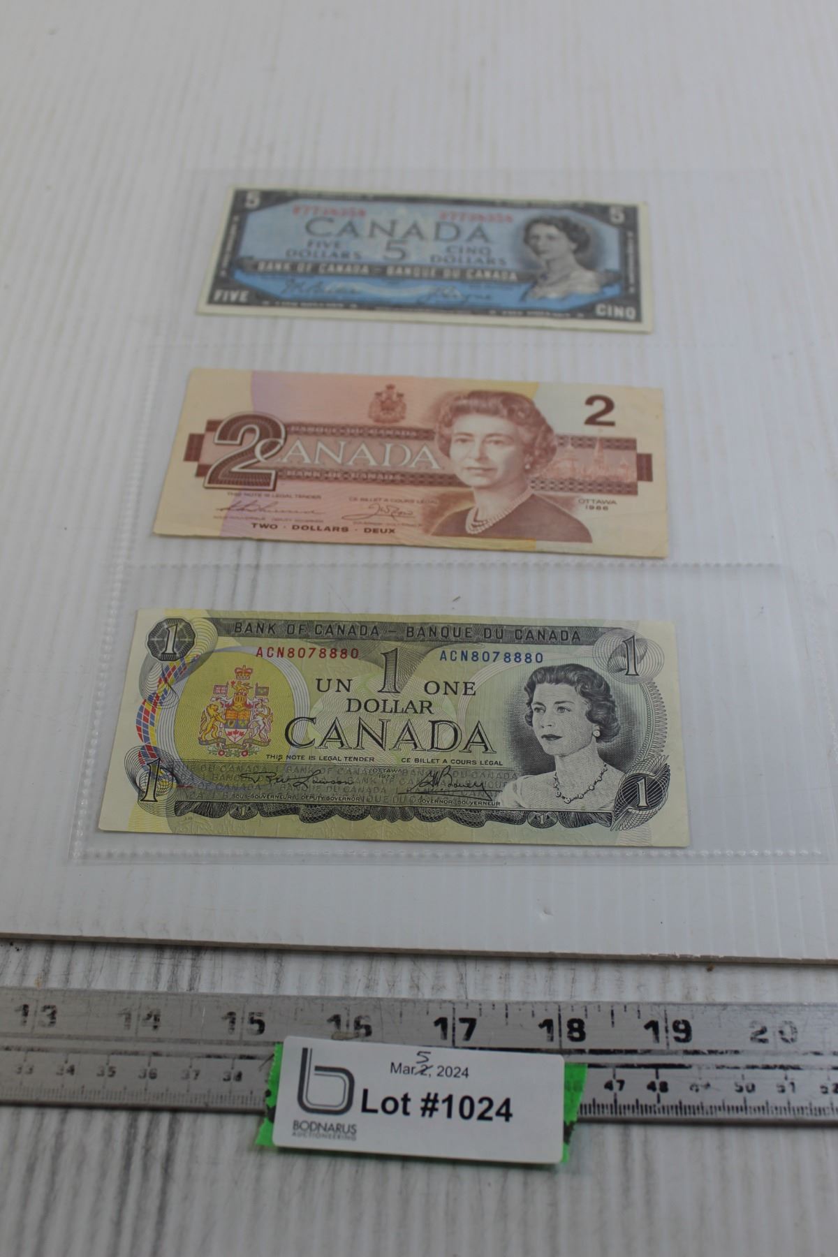 1954 $5 Canadian Bill, 1986 $2 Bill, 1973 $1 Bill