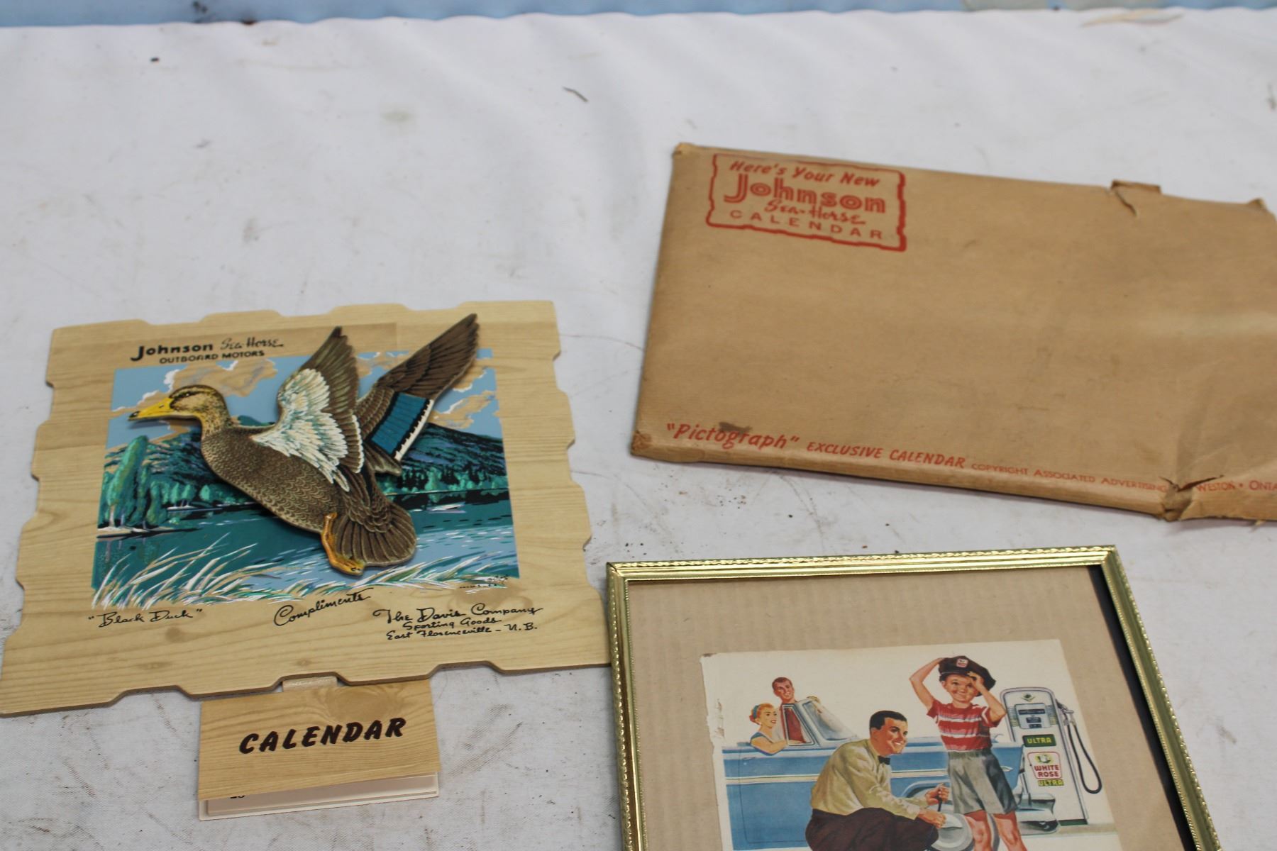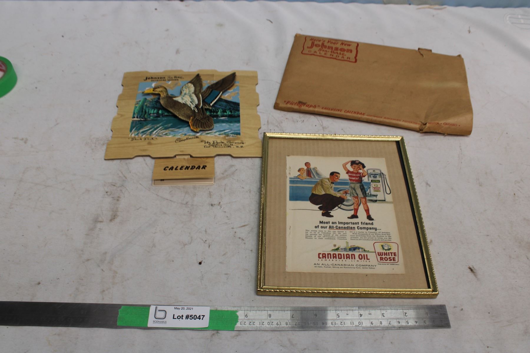 1954 Johnson Motors Sea Horse Calendar With Envelope and Framed White Rose Ad