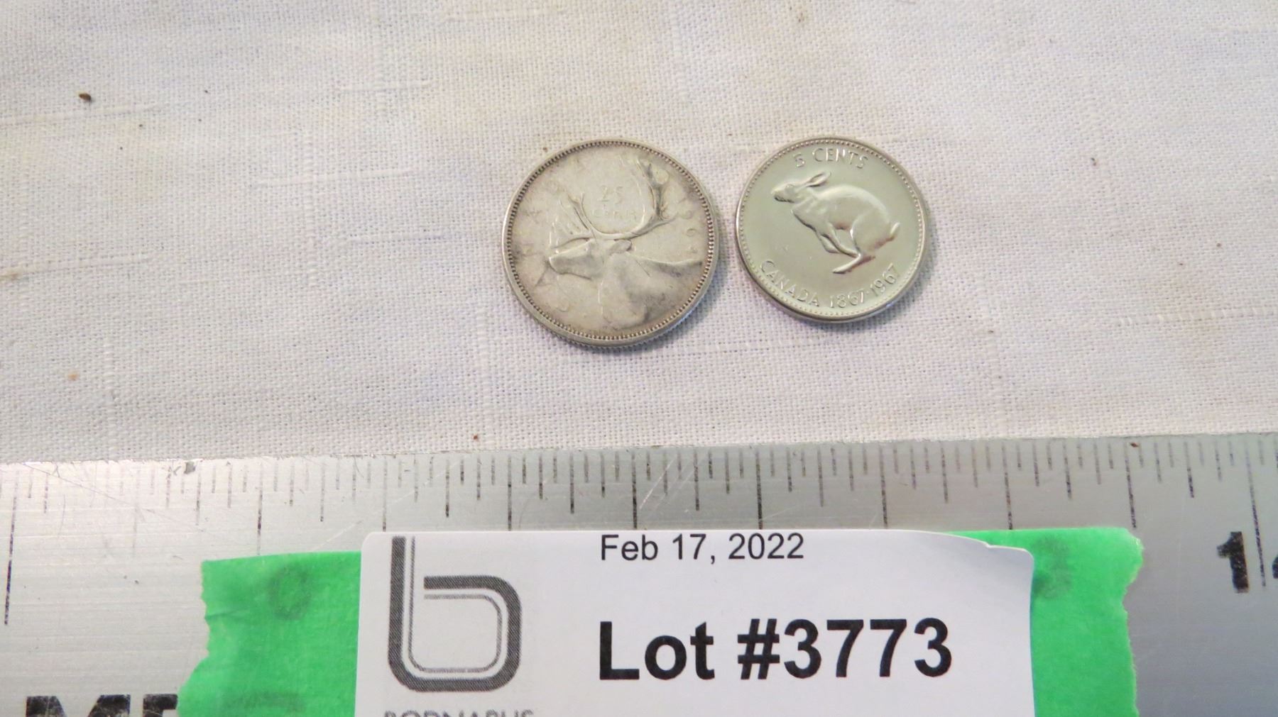1964 Canadian Quarter + 1967 Canadian 5 cent