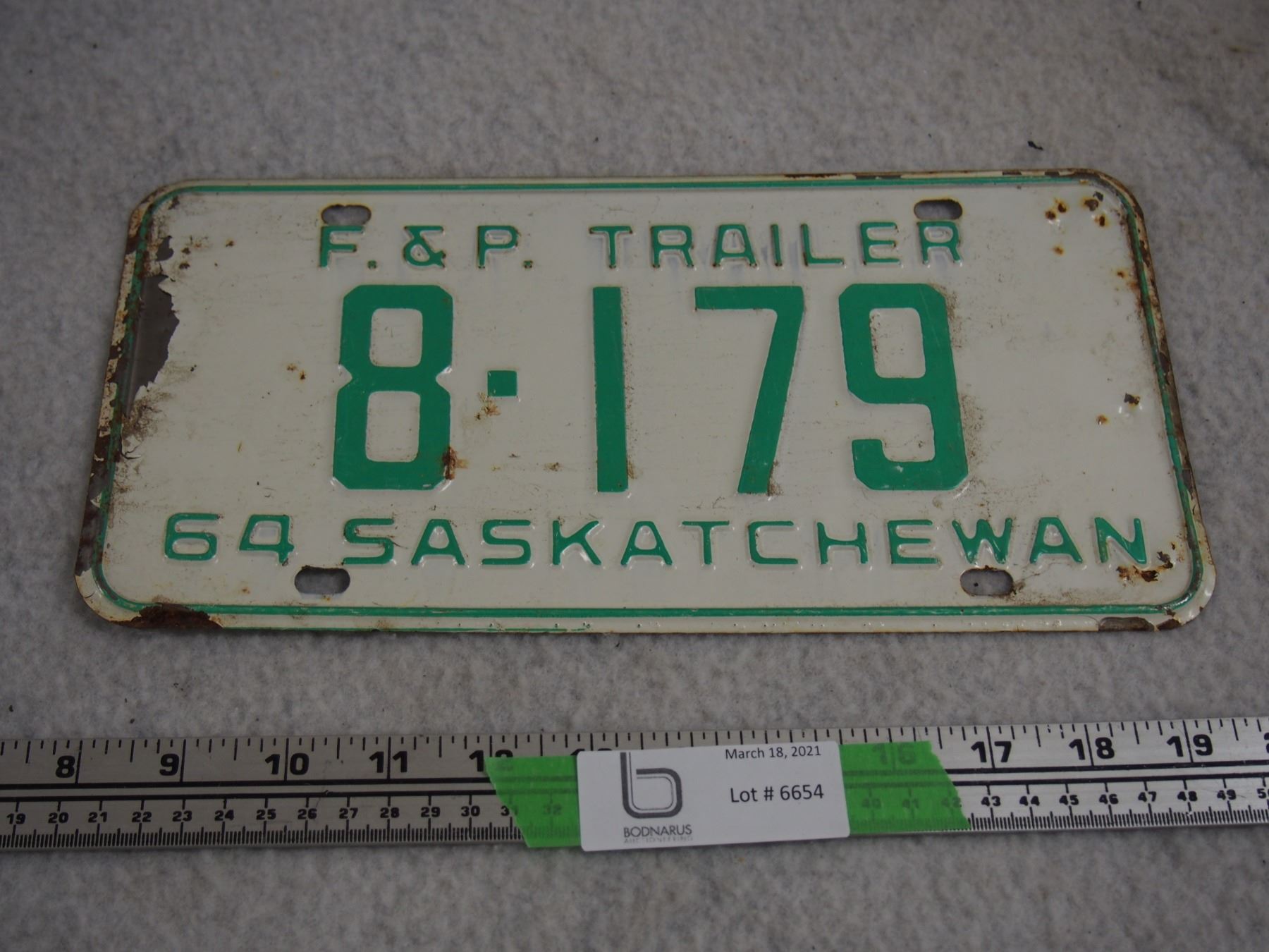 1964 F and P Trailer License Plate Sask