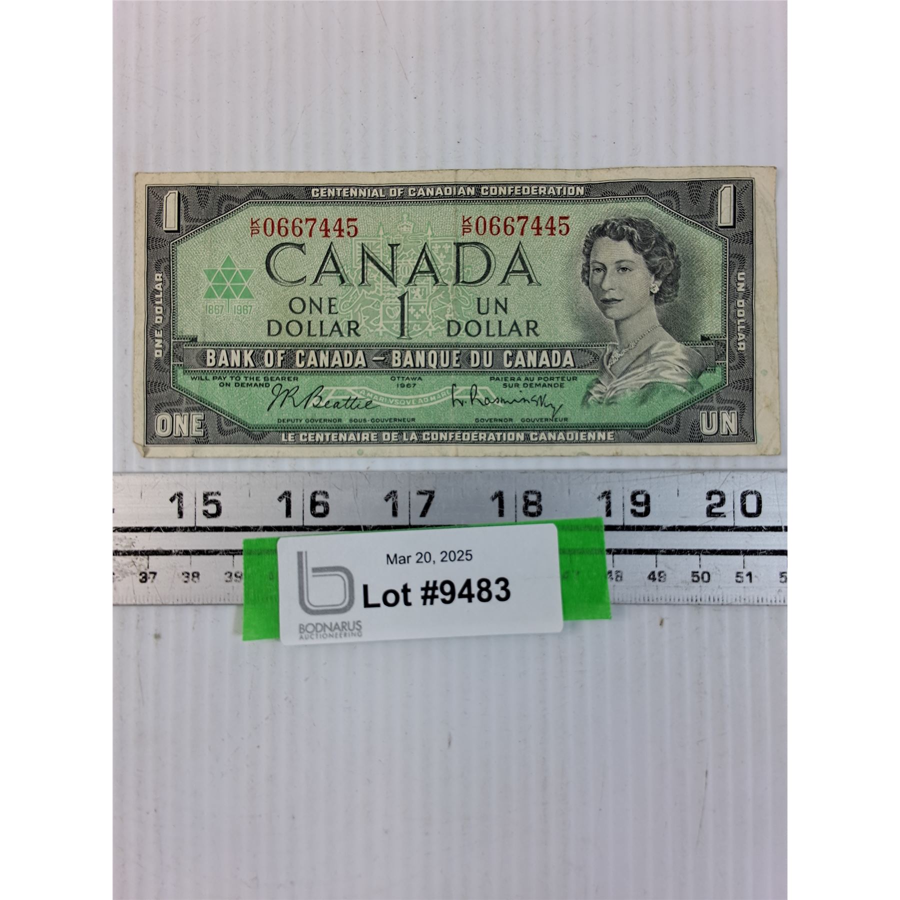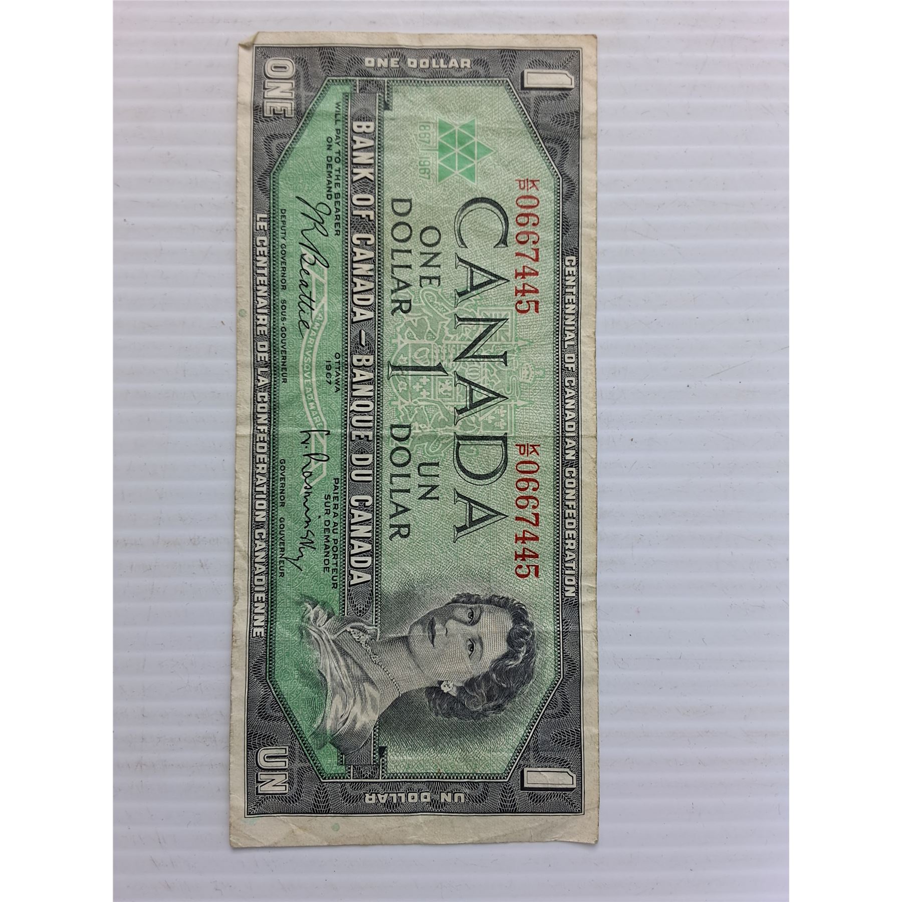 1967 Beattie Rasminsky 1 Dollar Centennial Note.