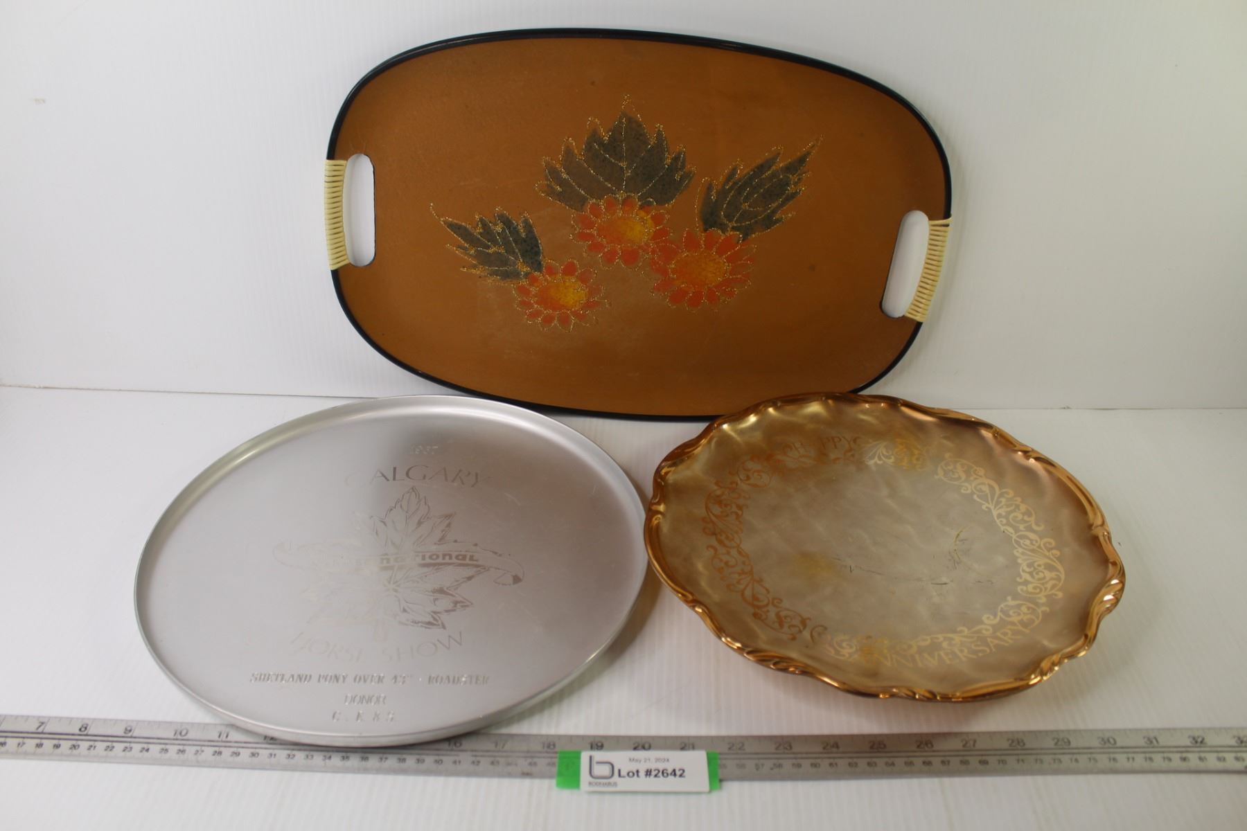 1967 Calgary Horse Show Metal Tray - Anniversary Tray - Resin Tray w/Flowers