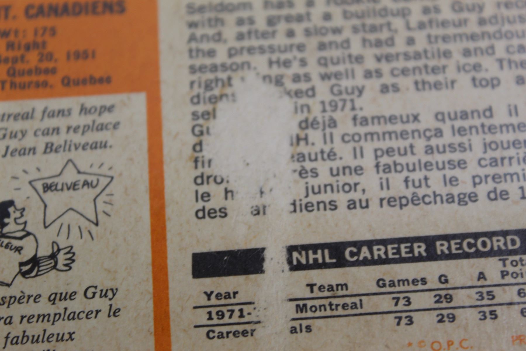 1972-72 OPC Guy Lafleur Hockey Card- Some Damage On Back
