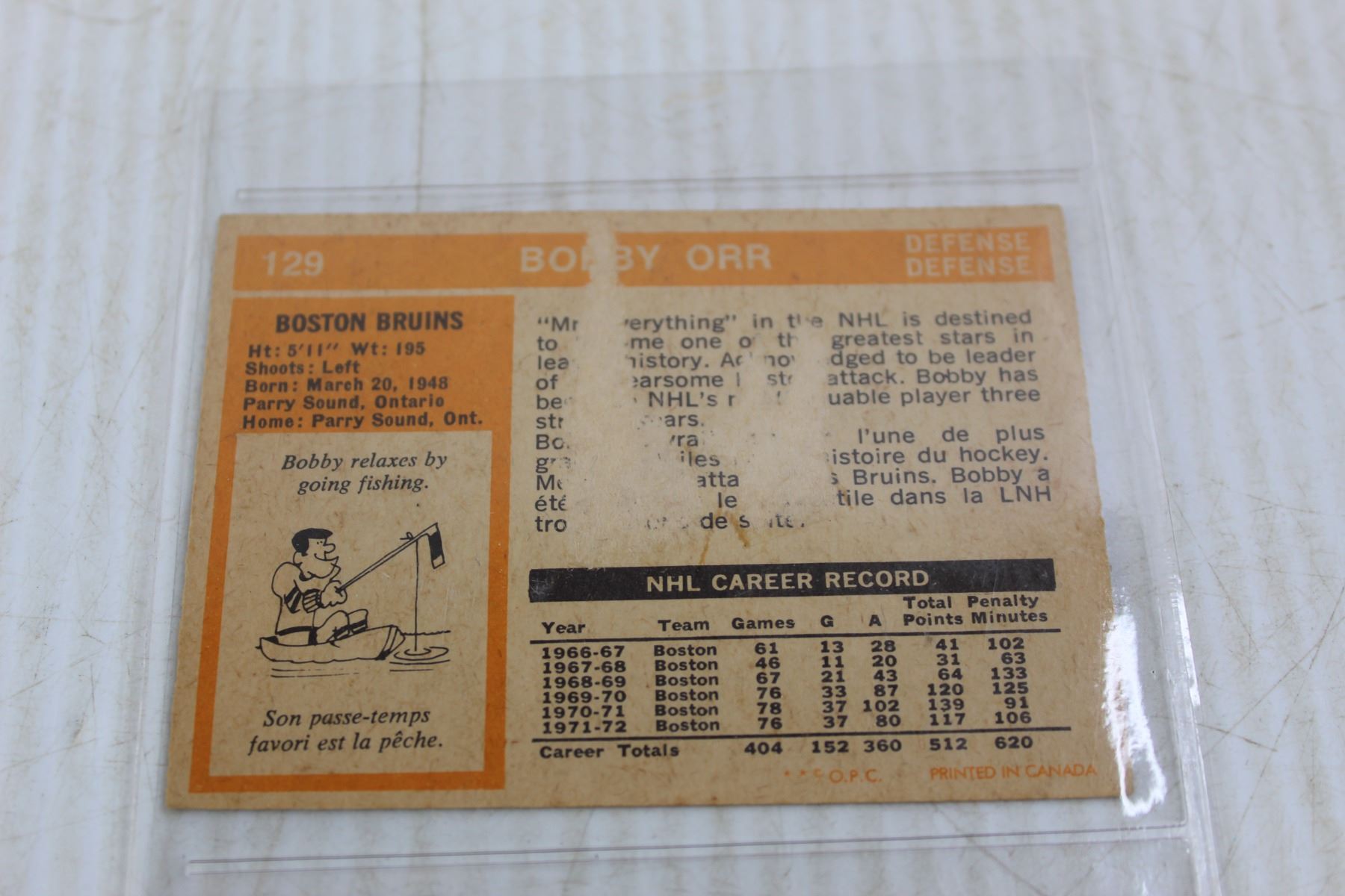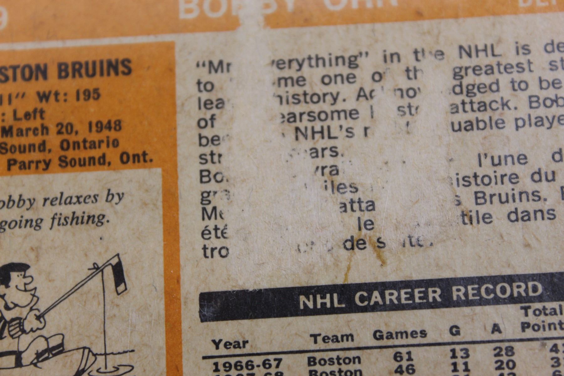1972-73 OPC Bobby Orr Hockey Card- Some Damage On Back