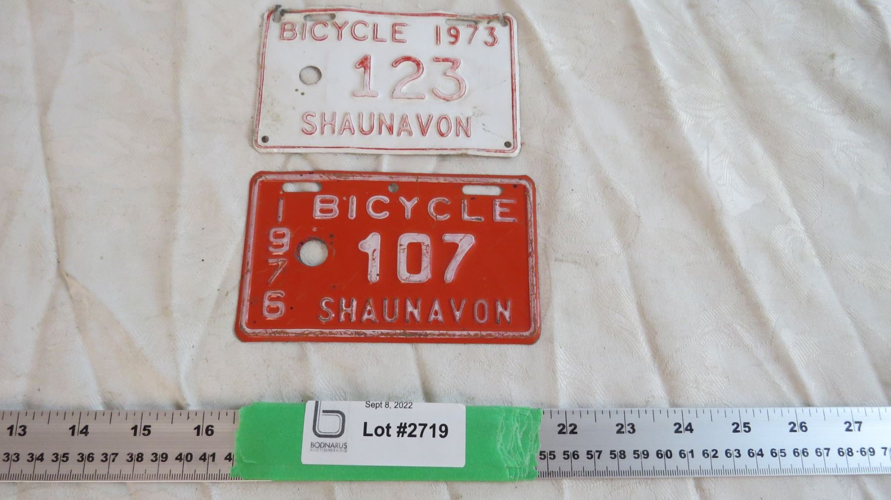 1973 and 1976 Shaunavon Bicycle Licence Plates