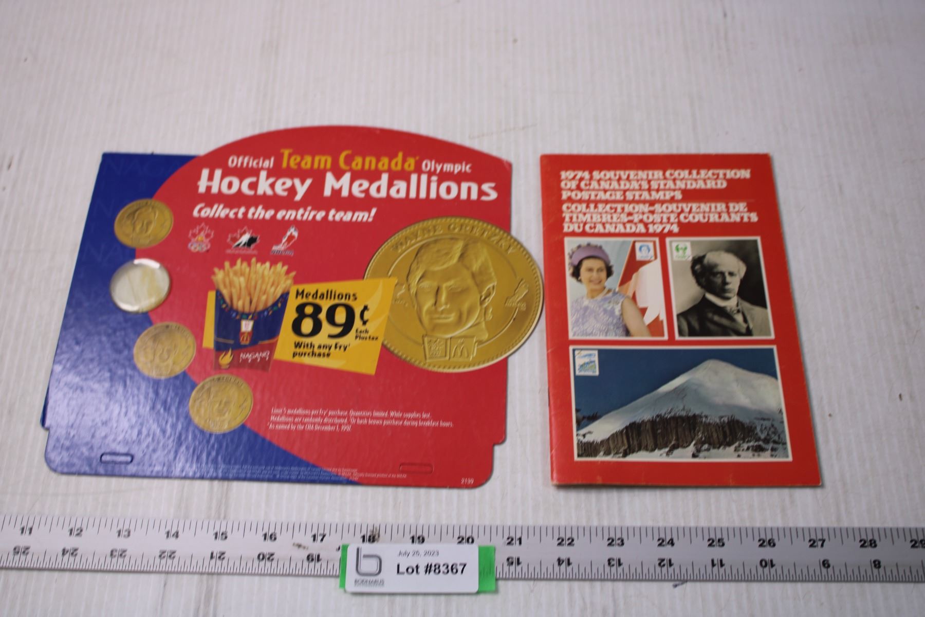 1974 Souvenir Collection of Canadian Standard Postage Stamps + Official Team Canada Canada Olympic Hockey Medallions (Missing |Medallion)