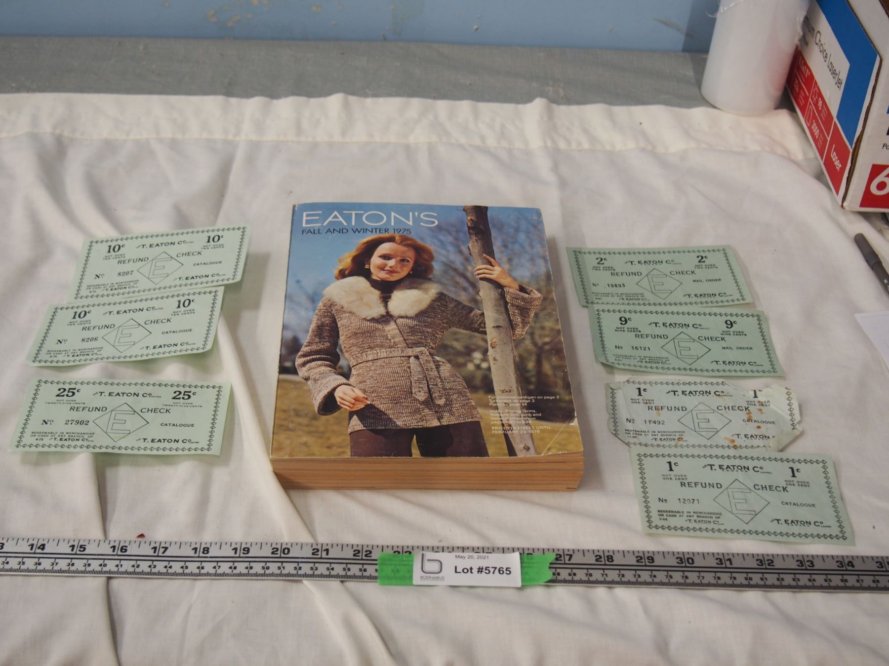 1975 Eatons Catalogue With Refund Cheques 1 cent - 25 cent