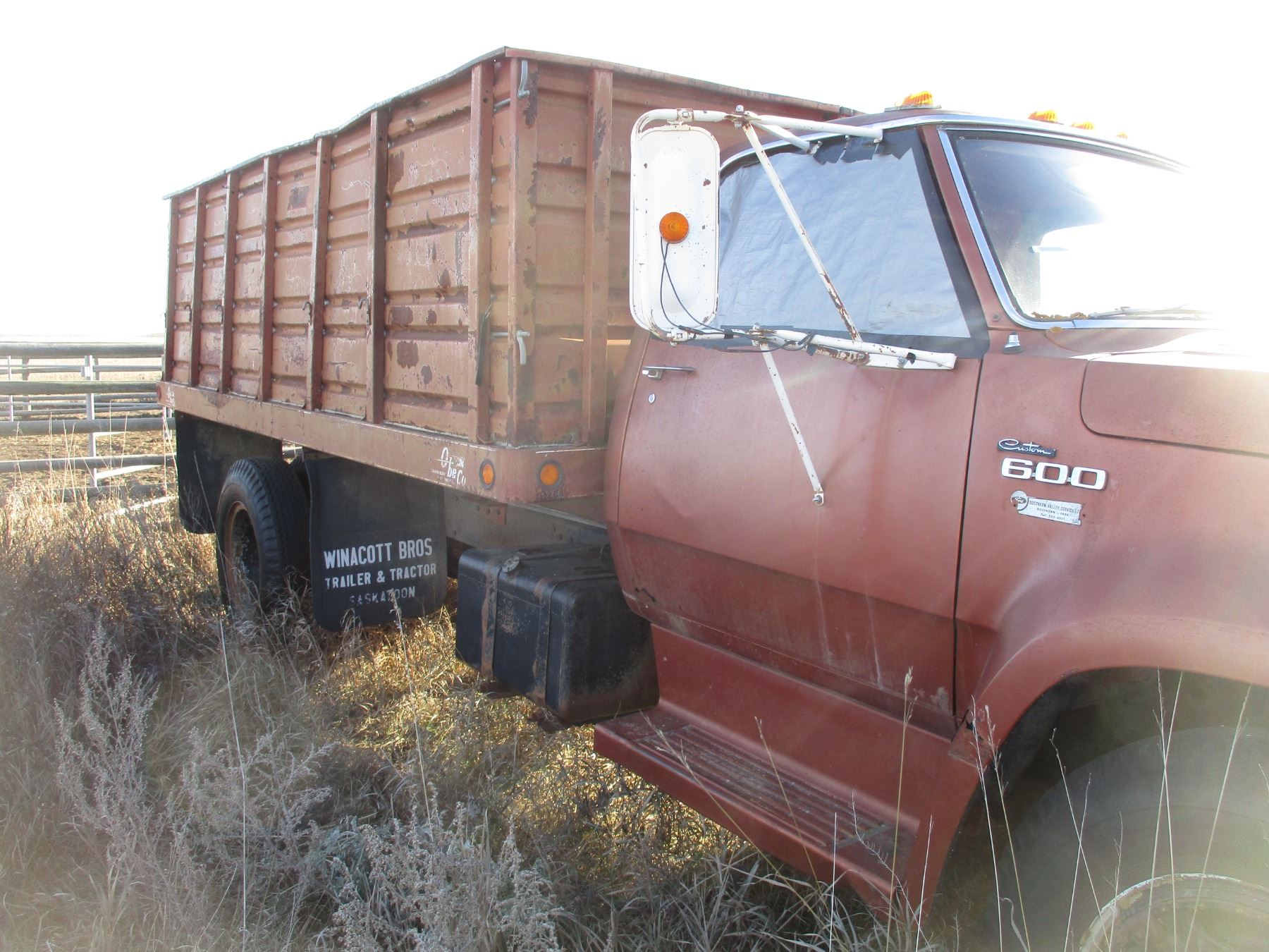 1976 Dodge 600 Grain Truck, 14 Foot Metal Box, Dual Rear Wheels, 71,500 Miles, 2 Speed Axle, Running
