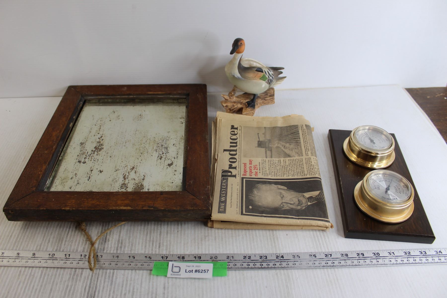 1979 The Western Producer Newspaper, Duck Decoration, Hanging Mirror - 13 1/4" x 16", Temperature and Humidity Gauge
