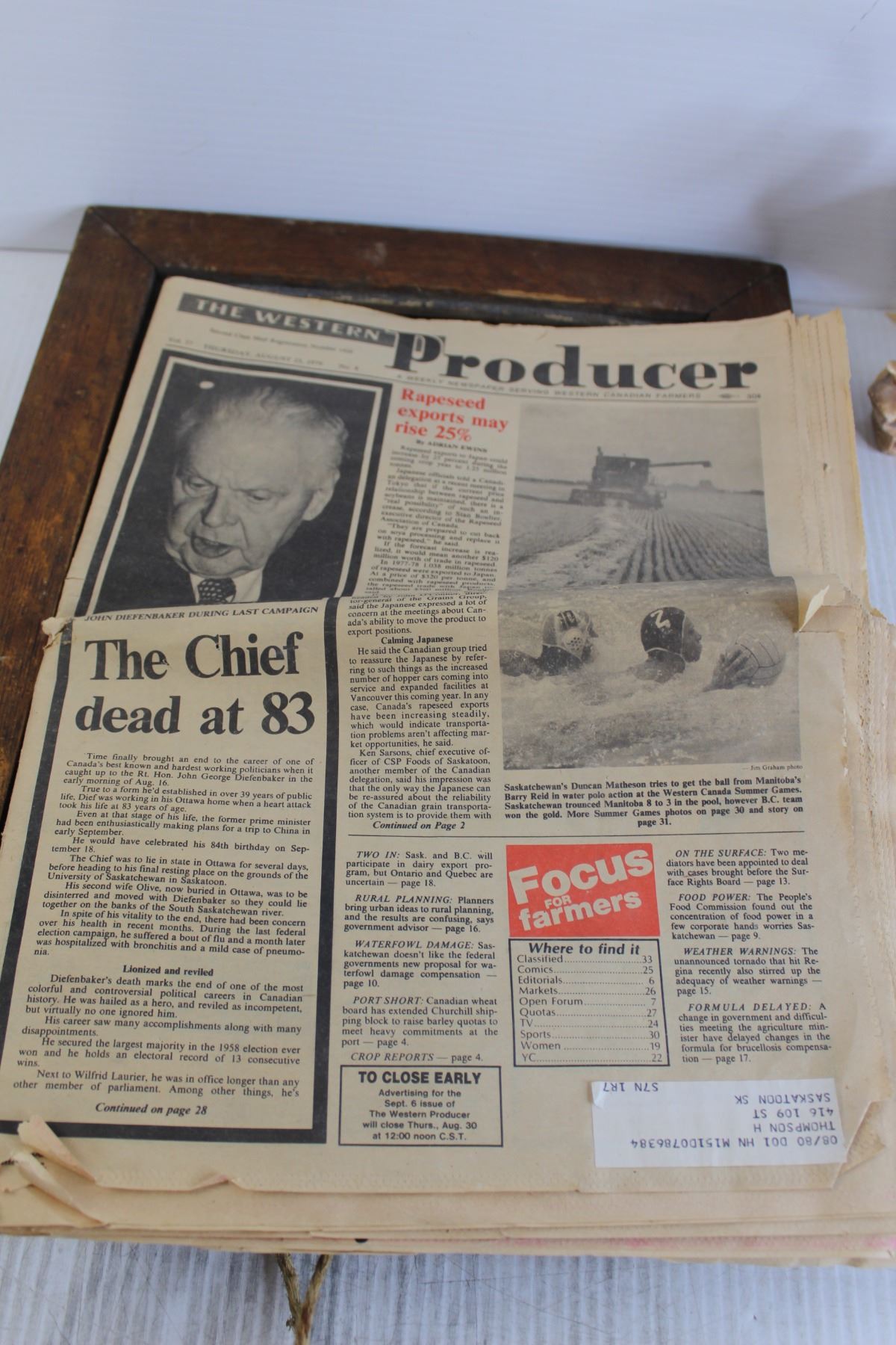 1979 The Western Producer Newspaper, Duck Decoration, Hanging Mirror - 13 1/4" x 16", Temperature an