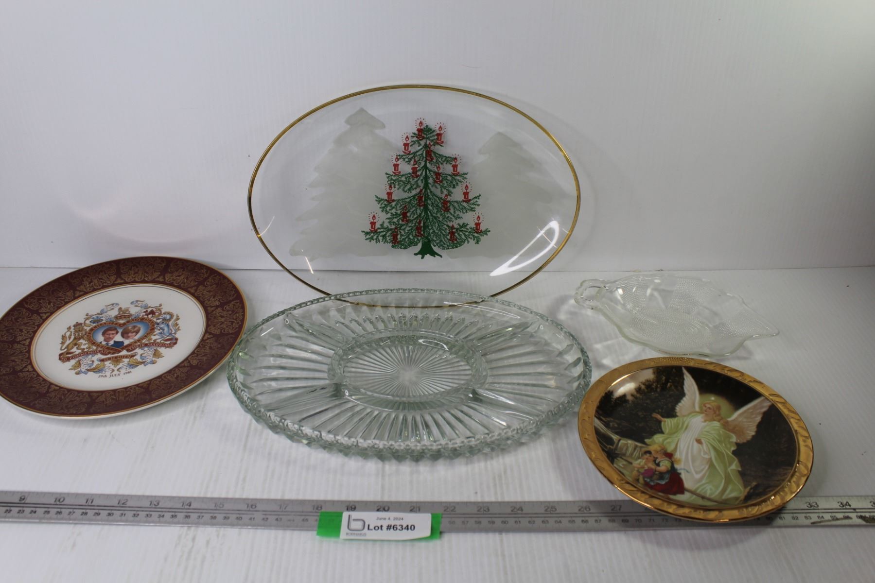 1981 Royalty Plate - Oval Divided Glass Plate - Oval Christmas Plate - Angel Plate - Glass Dish