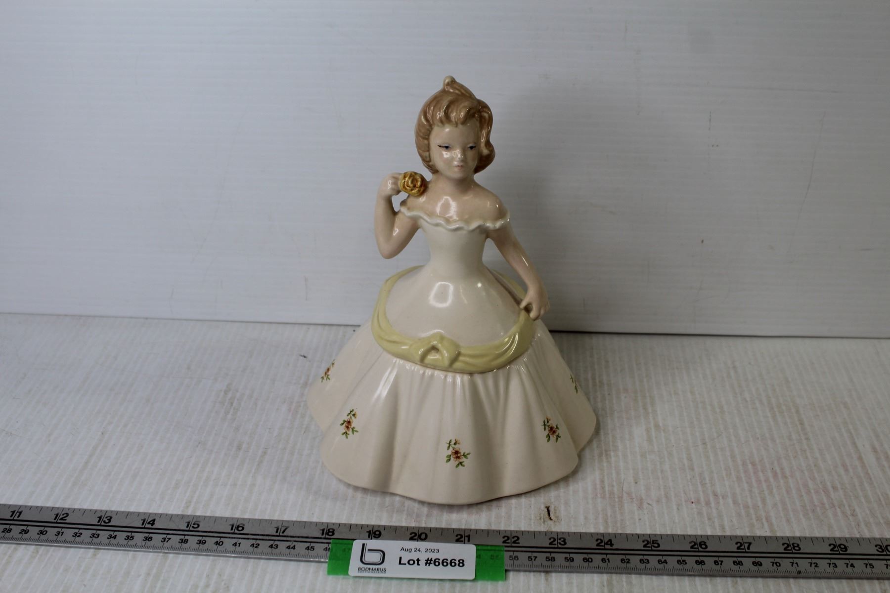 1981 Vintage Ceramic Trinket Dish - Lady w/Rose Dress