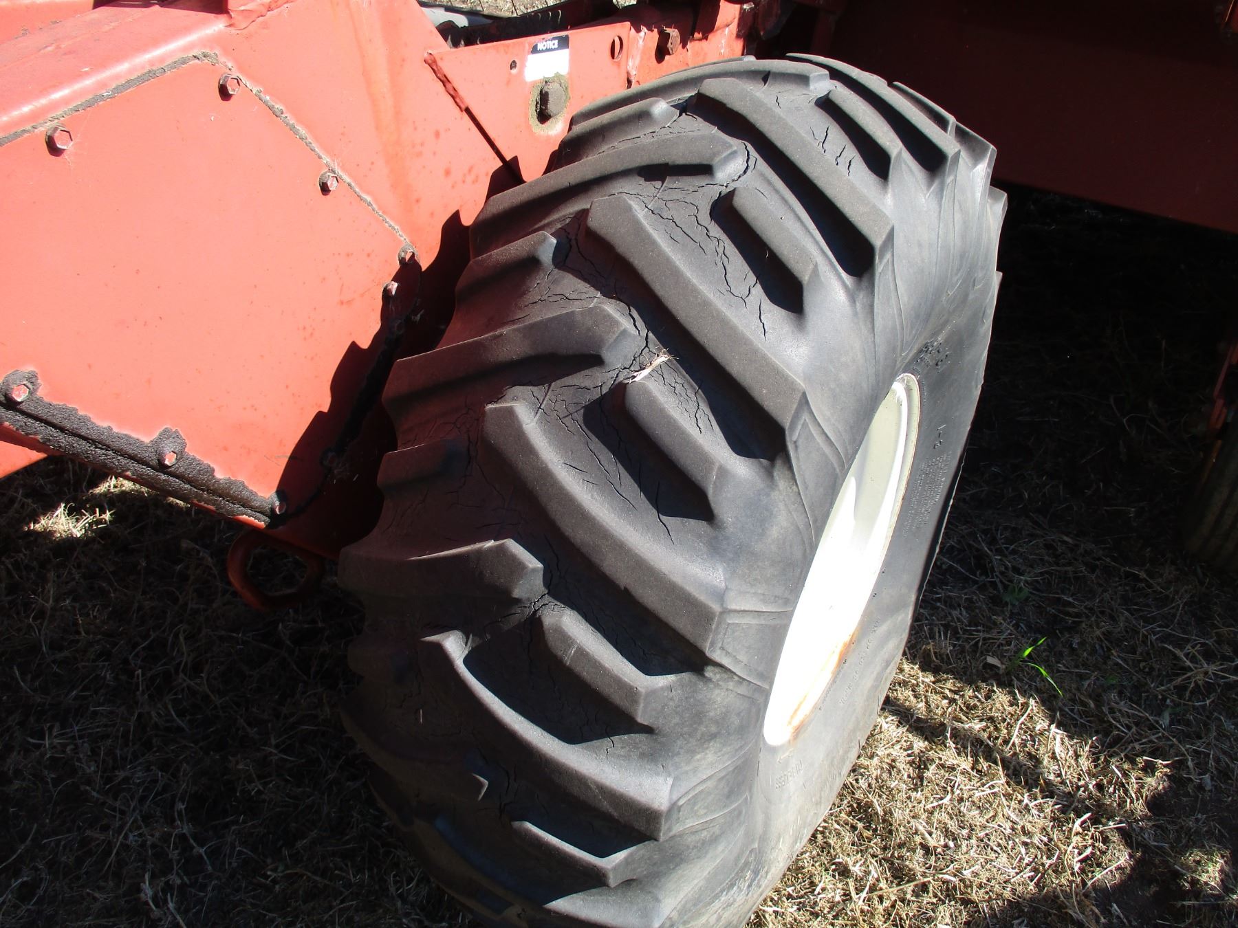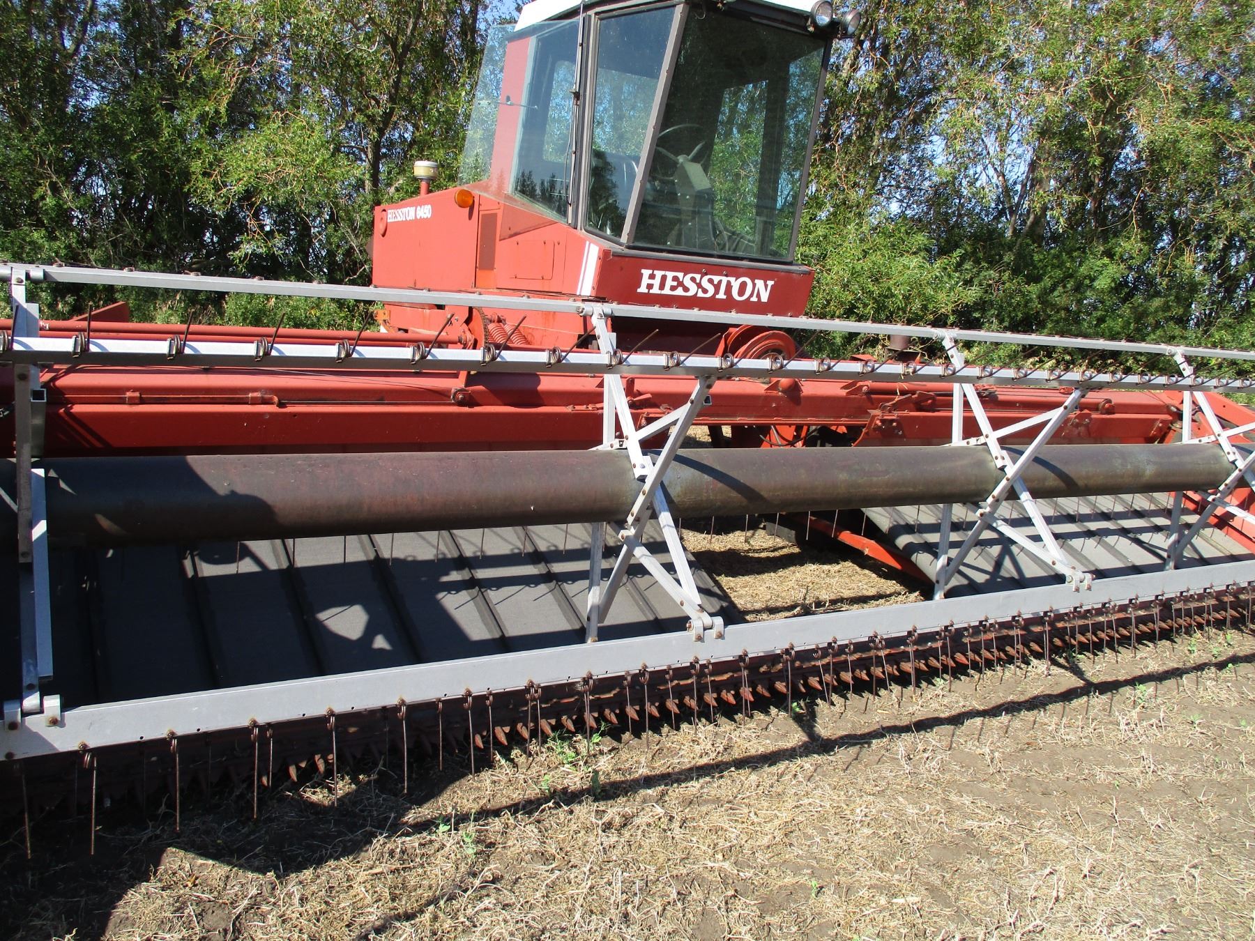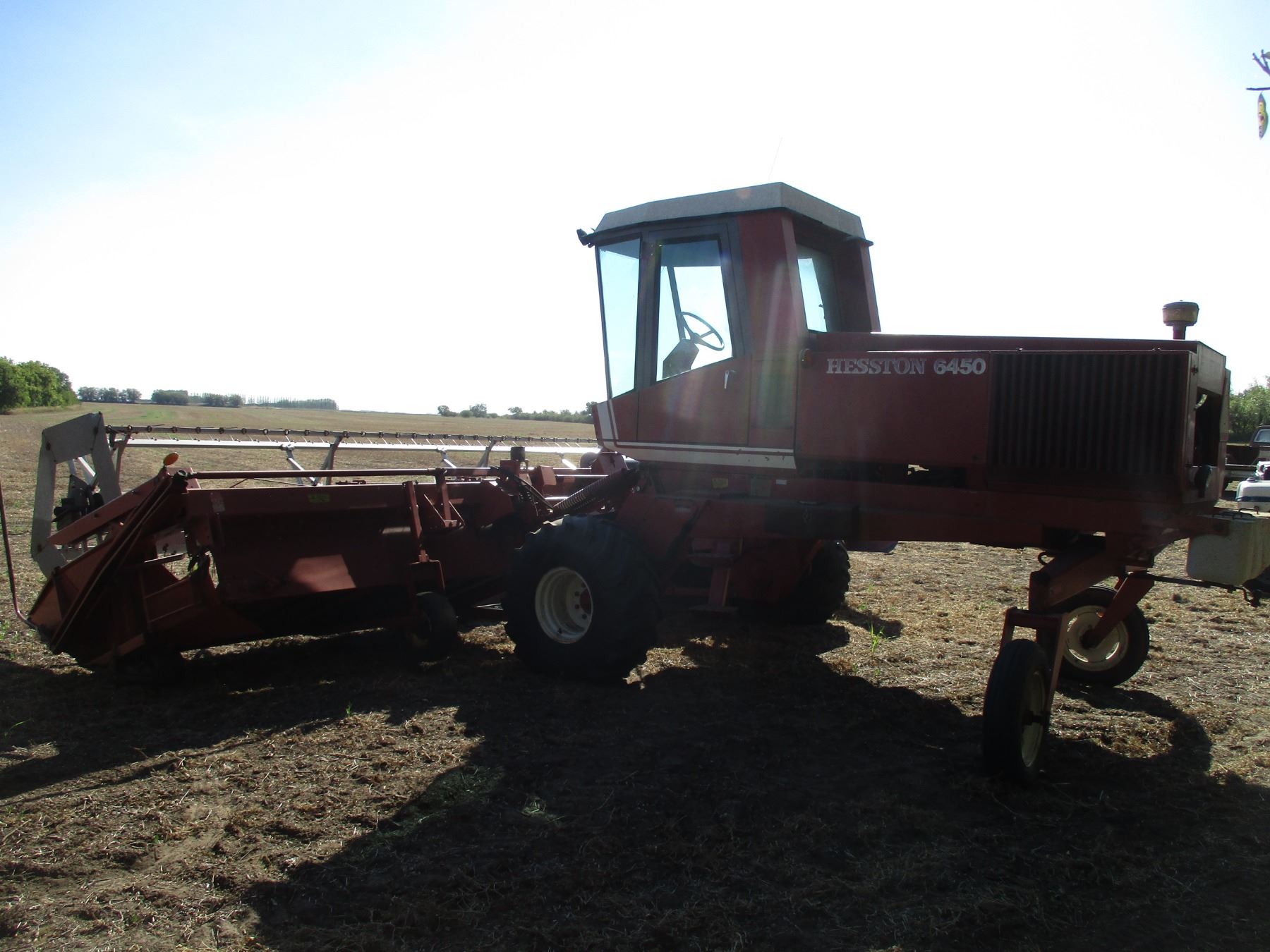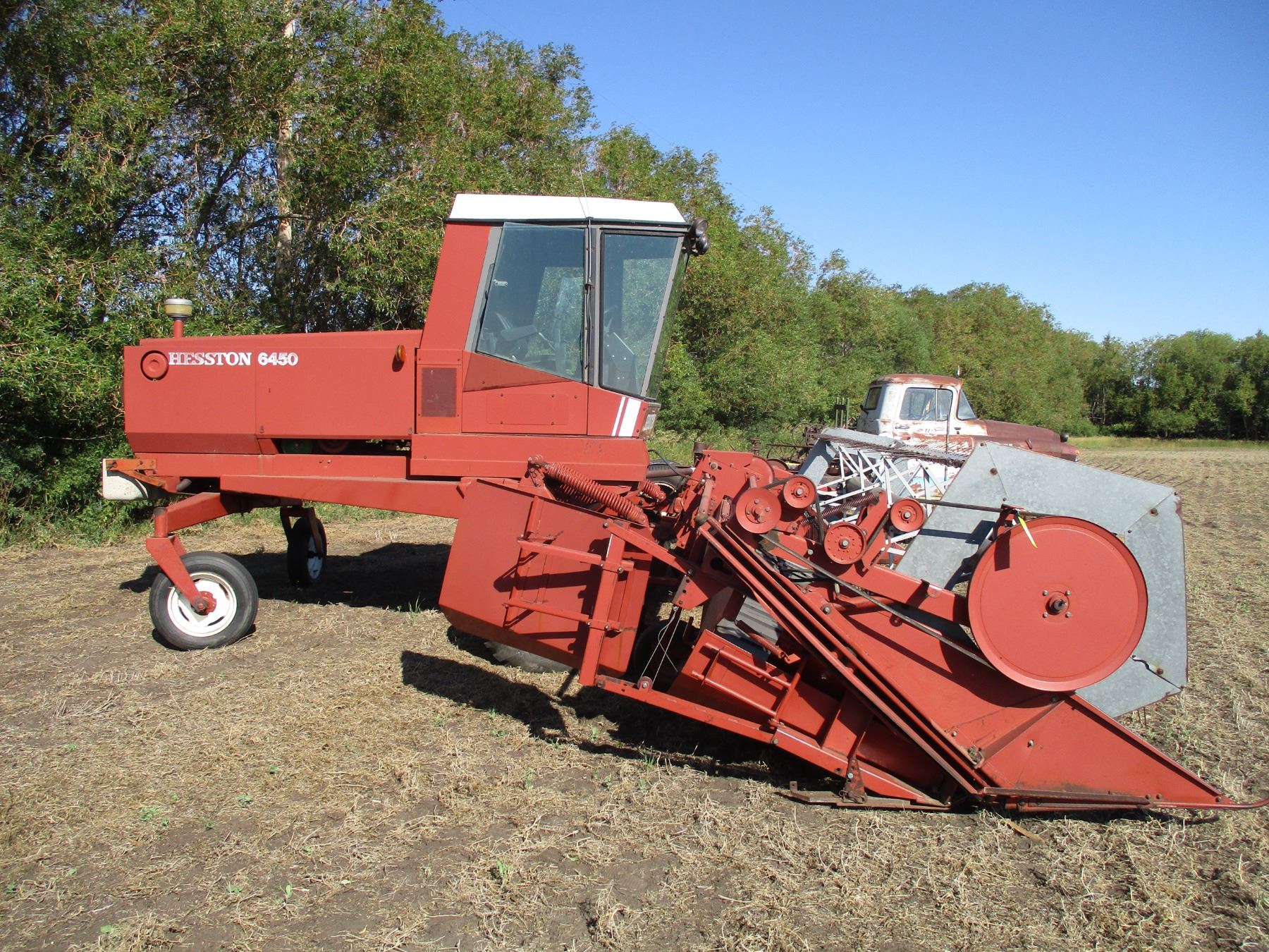 1982 Hesston 6450 Swather - Chrysler Slant 6 engine Runs Well - New battery - 21ft u2 pickup reel - 1377 hours #645T 4078 - Reel + Canvasses turn and operate but cutting knife doesn't for some reason - NEEDS REPAIR