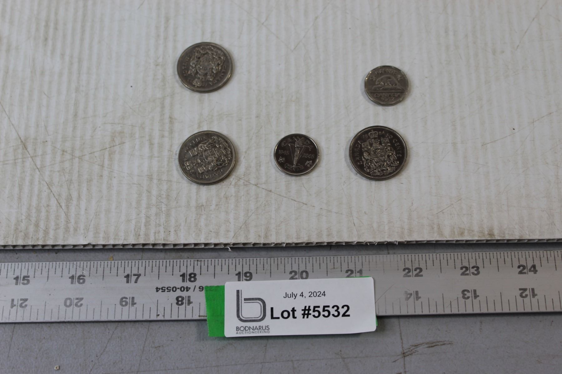 1984 $0.50 Coin, 1947 King George Coin, 'V' Nickel, (2) $0.50 Coins - 1969 & 1973