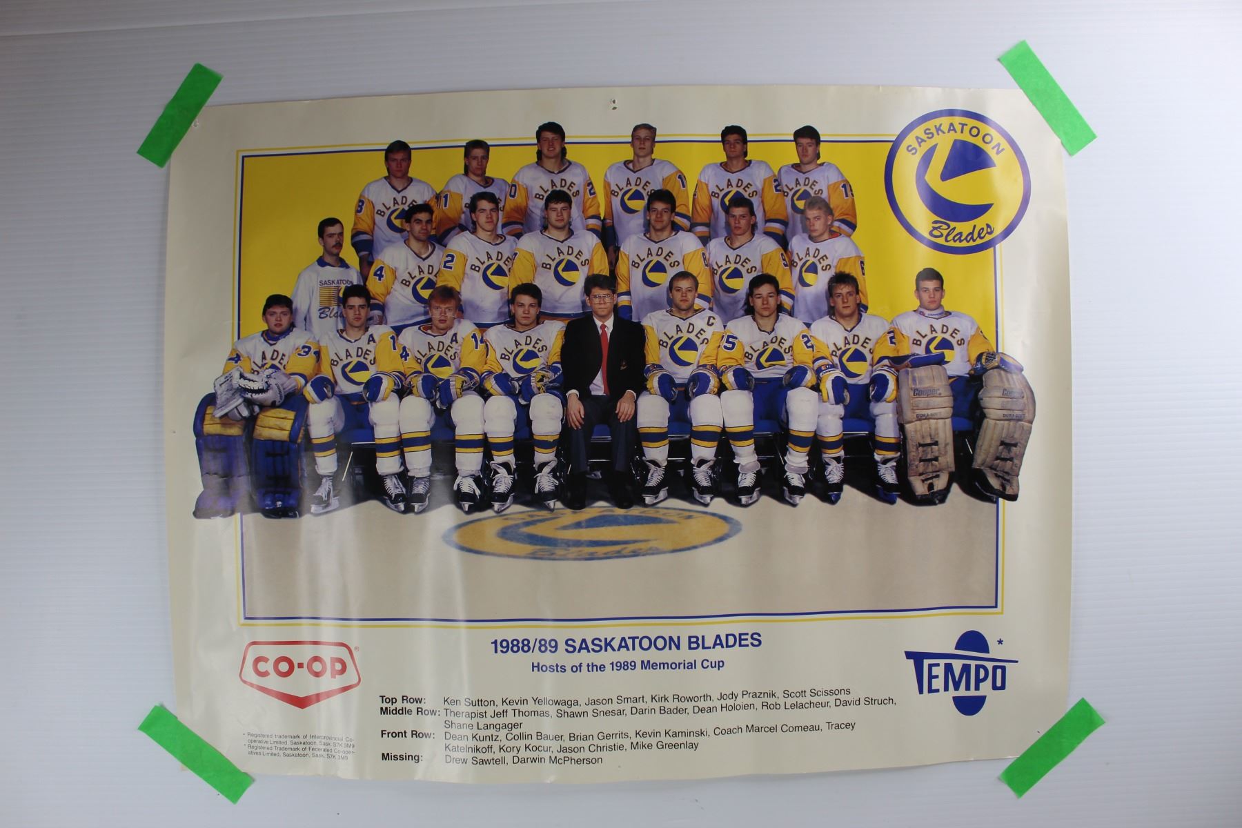 1988- 89 Saskatoon Blades Team Picture Poster- 24'' x 18'' - As Is
