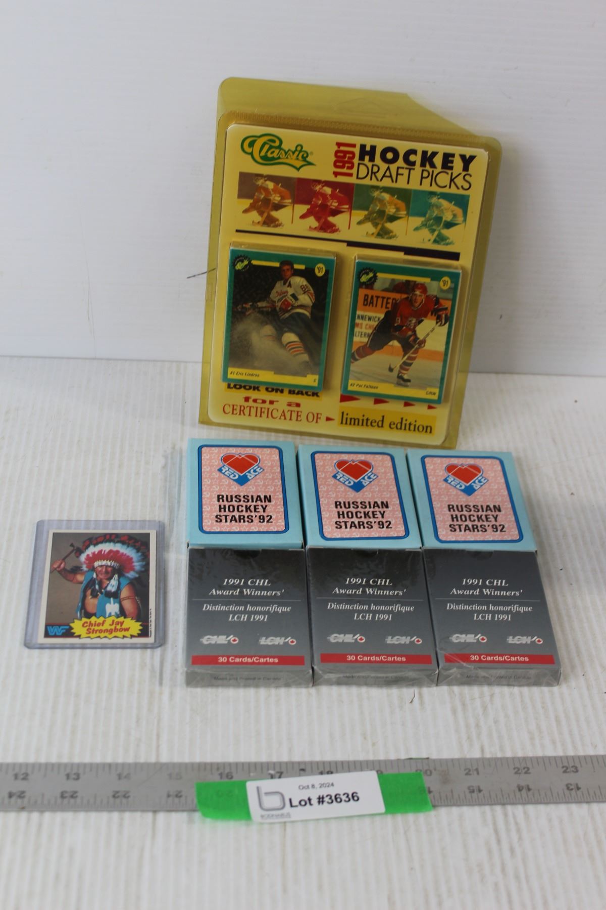 1991 Hockey Draft Picks Cards, (3) Russian Hockey Stars 92, (3) 1991 CHL Award Winners Hockey Cards, WWE Chief Jay Strongbow Card
