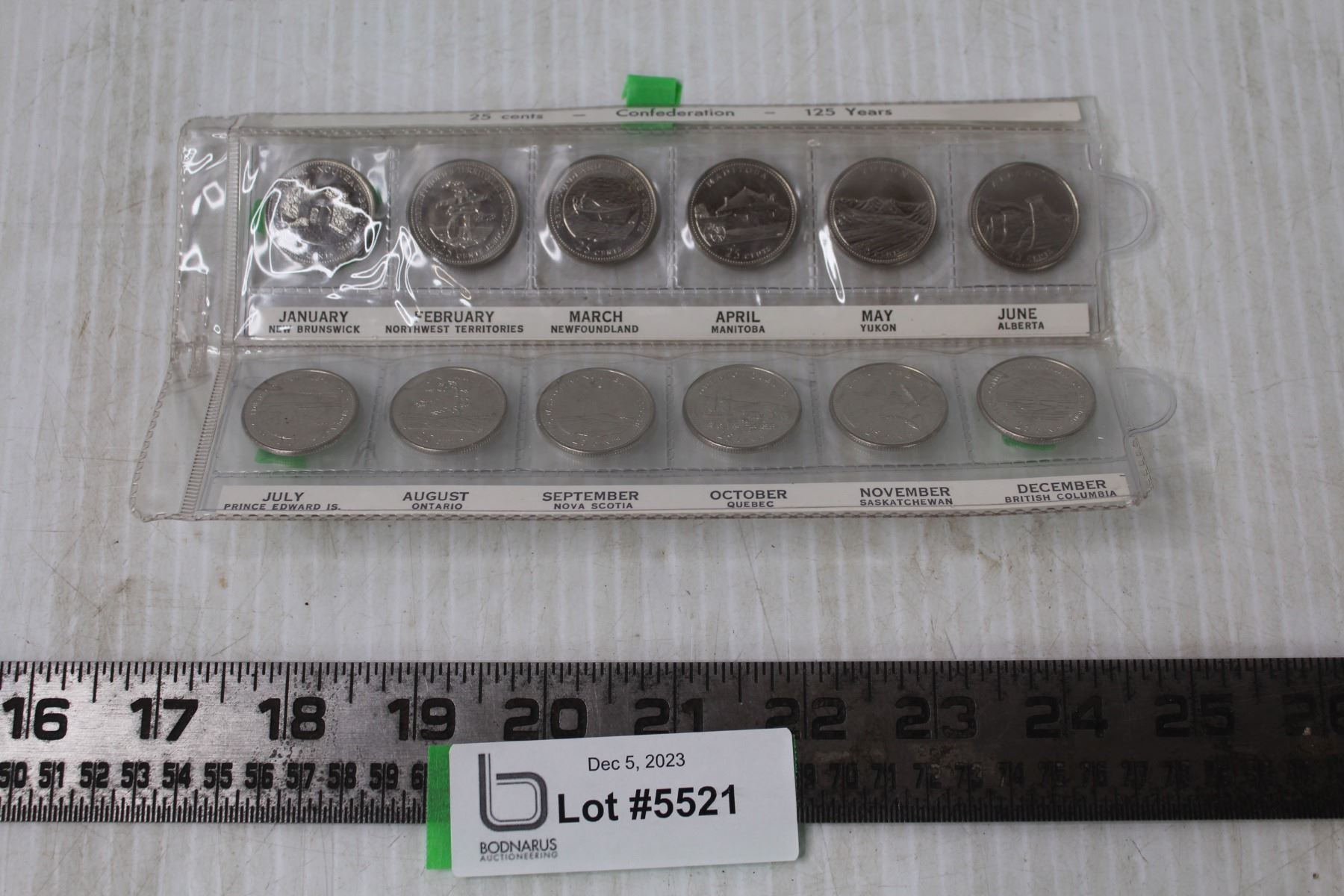 1992 125 Year Celebration Coins: January-December {Provincial 25 cent Coins) in plastic sleeve