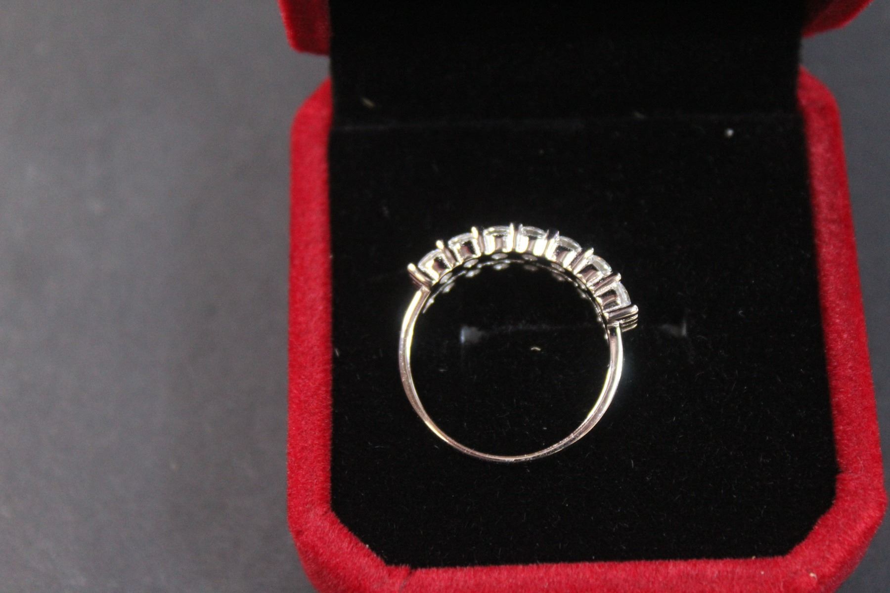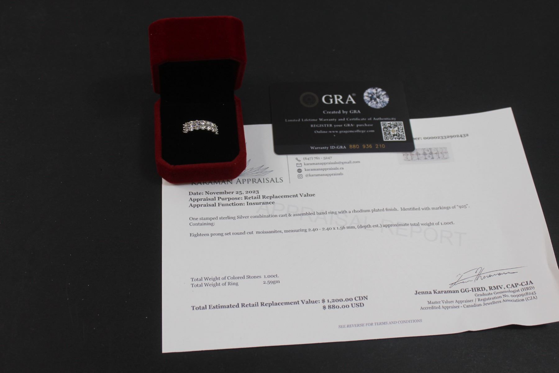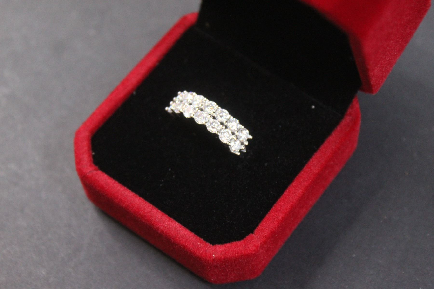 ^ 1ct. TW GRA Certified Round Brilliant Cut Moissanite Stones VVS D Color w/ (18) Moissanite Stones set in Two Rows Set in Sterling Silver - Ring Size 7