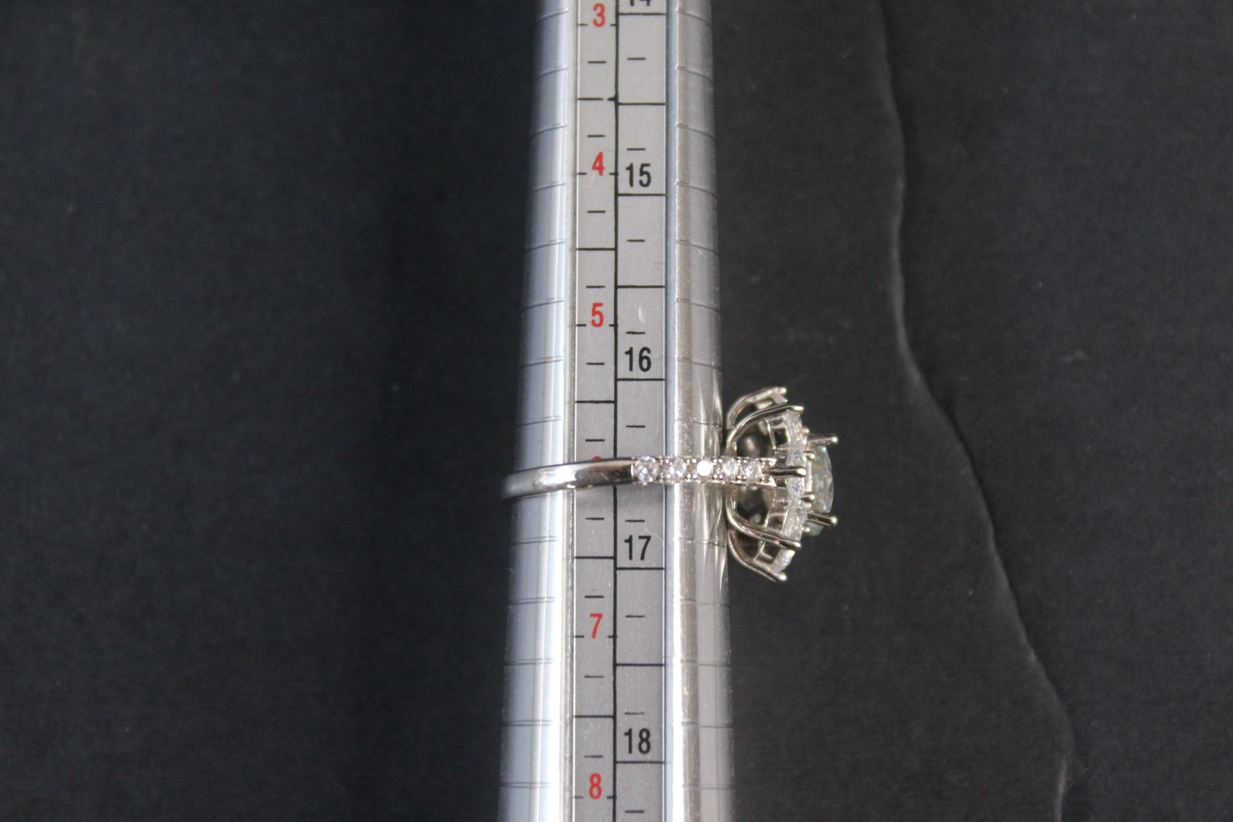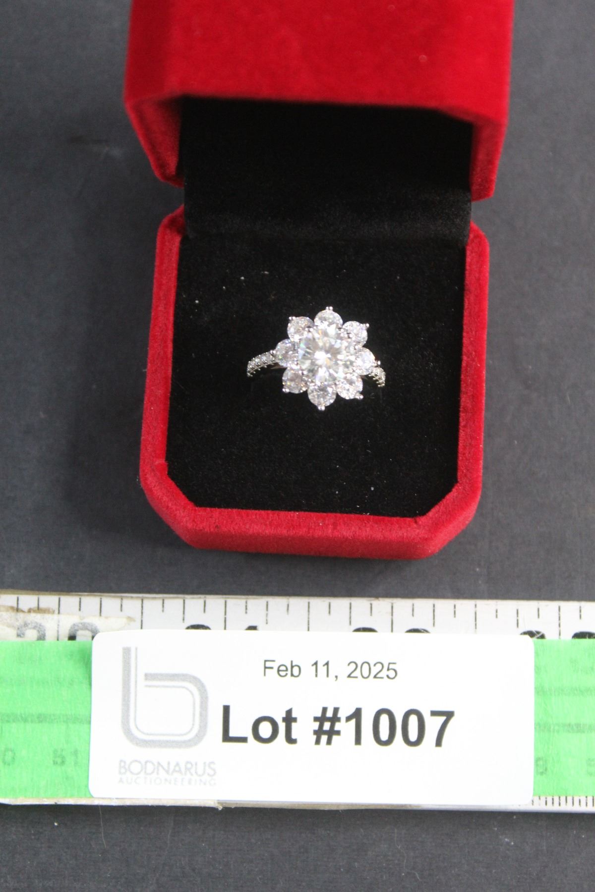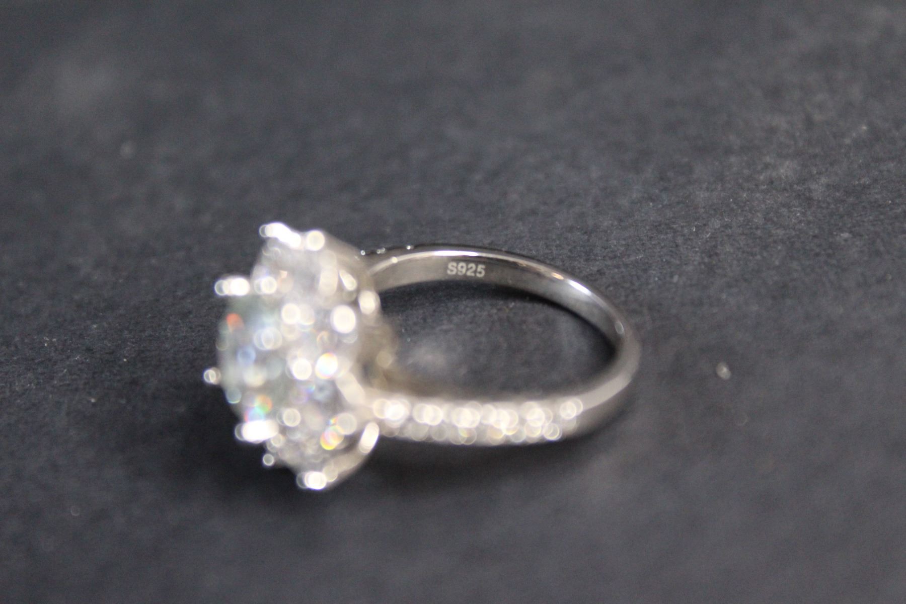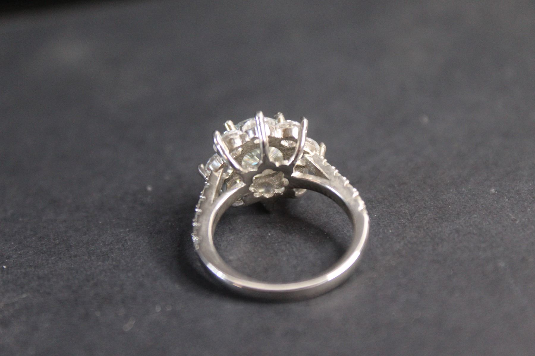 ^2.00 CT GRA Certified Round Brilliant Cut Moissanite VVS D Color with 8 Round Cut Cubic Zirconium Set Around The Center Weighing a Total 1.00 CT with 10 Round Cut CZ's in Shank Weighing Total 0.30 CT Set in 925 Silver Ring - Size 6 - Retail Value $1530