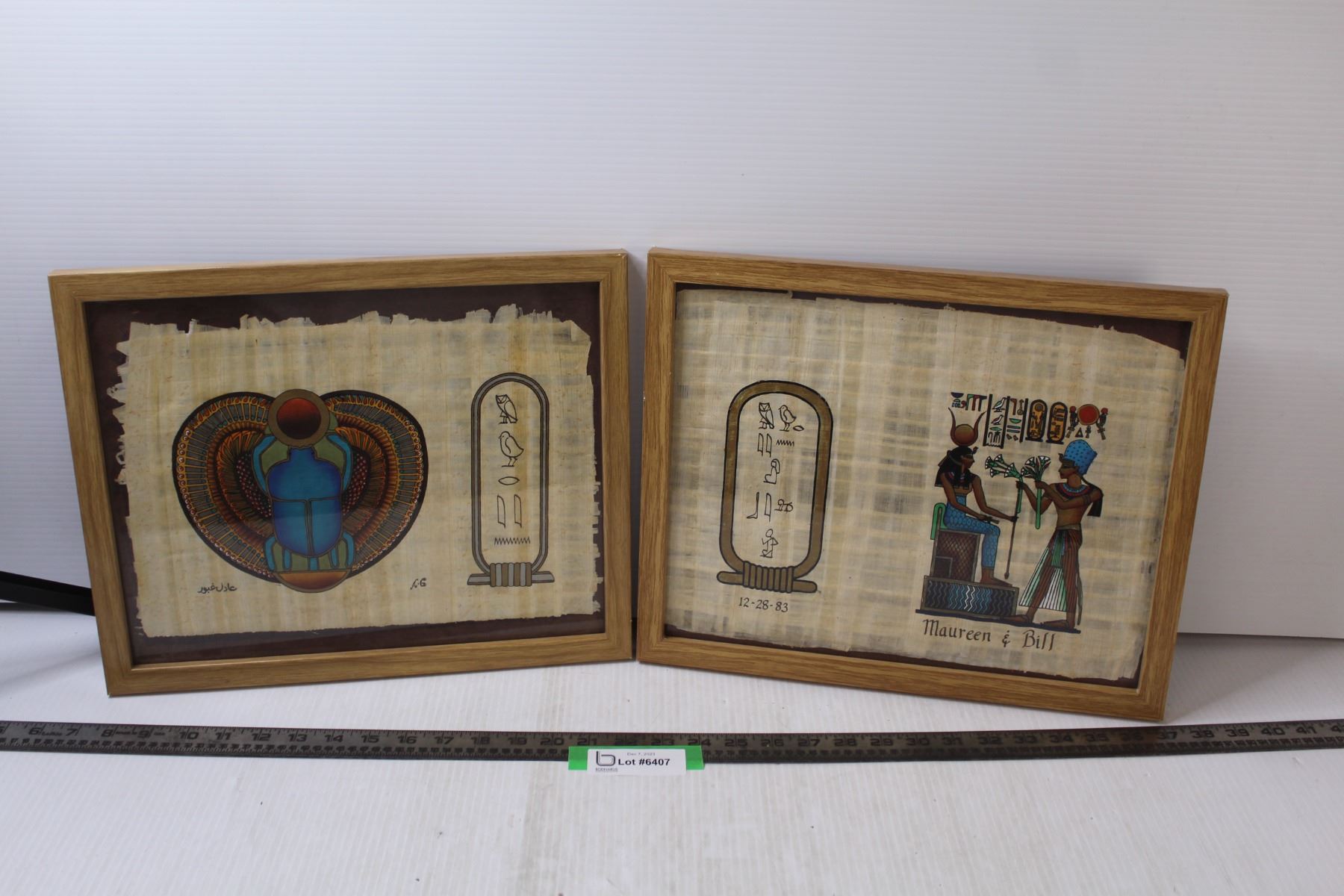 (2) 15" x 12" Wooden Framed Egyptian Woven Paintings (Scarab Painting, Marriage Painting)