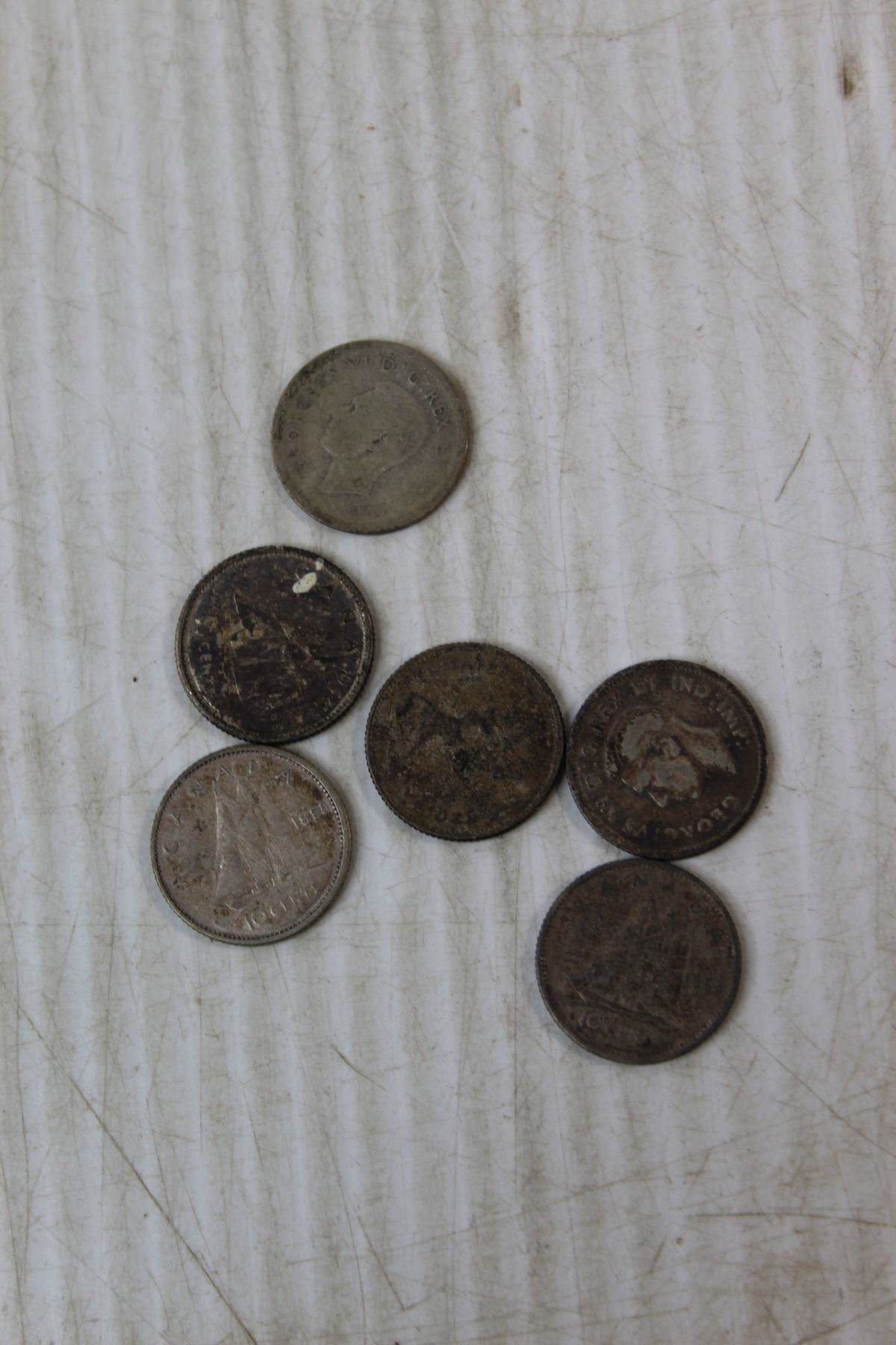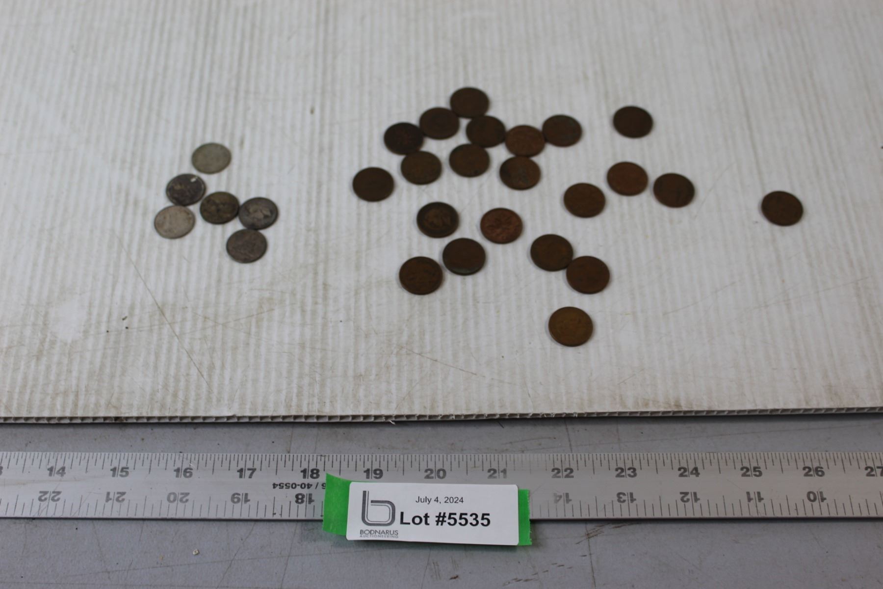 (2) 1937 & 1938 $0.01 Coins, (5) 1950's $0.01 Coins, (5) 1960's $0.01 Coins, (10) 1940's $0.01 Coins, (6) Silver Dimes