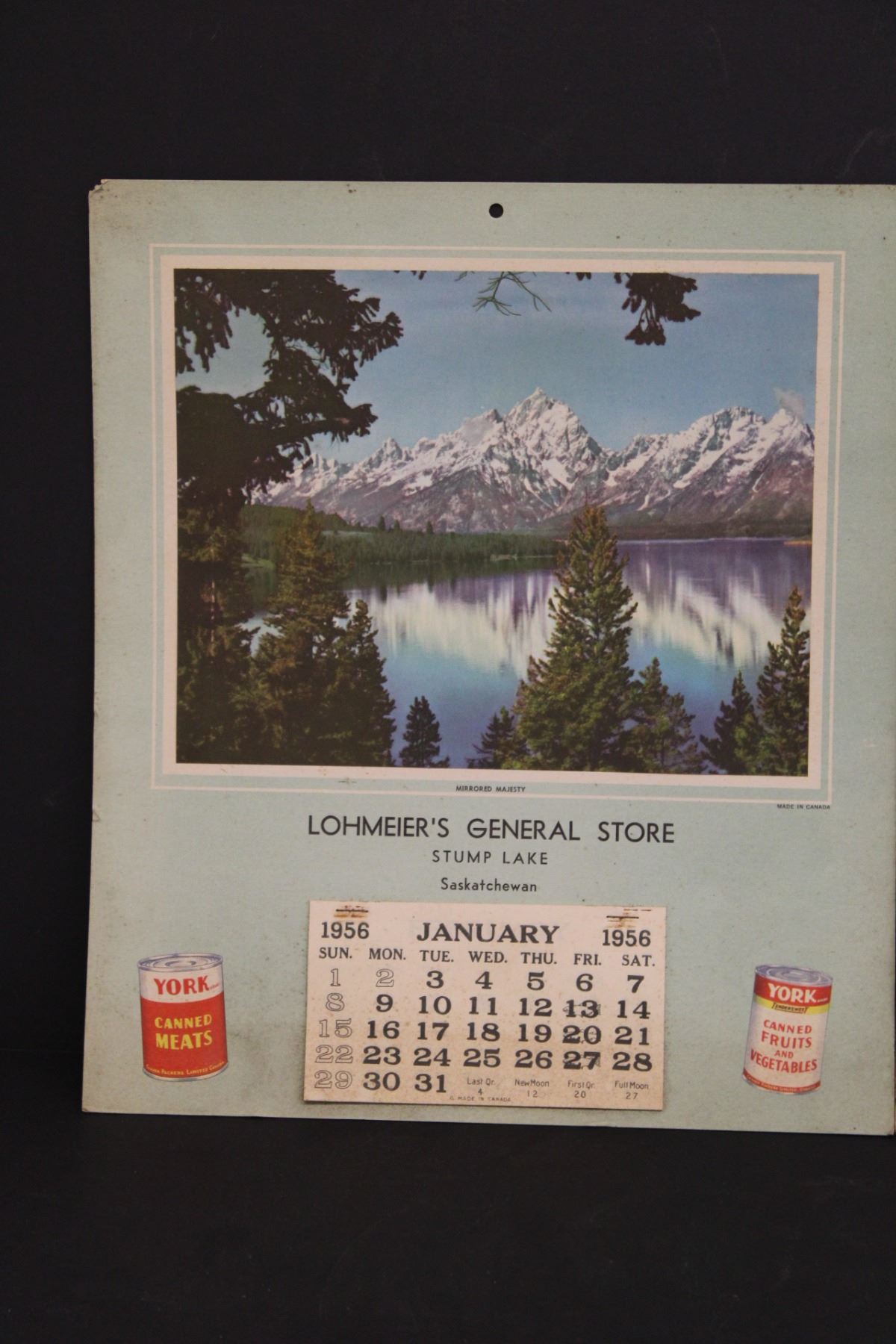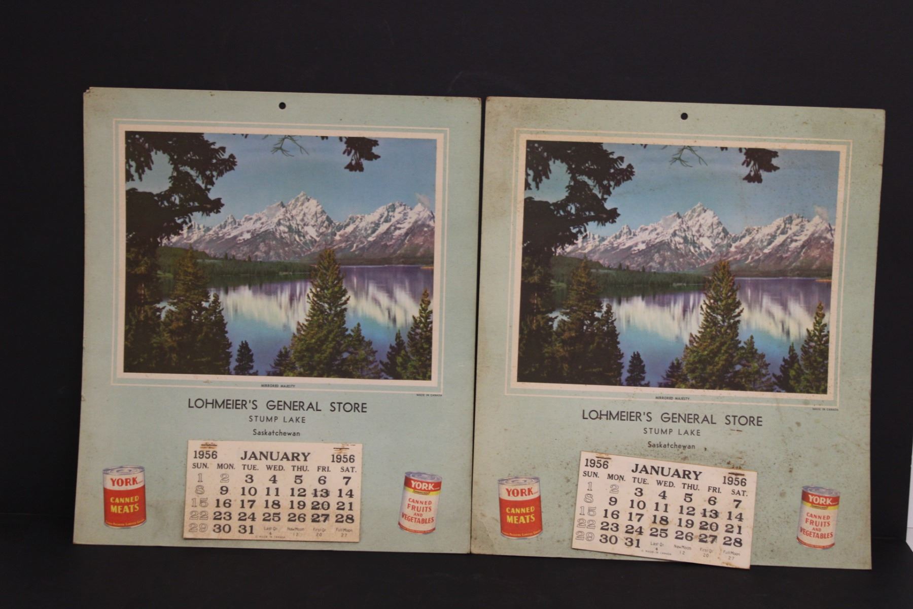 (2) 1956 Lohmeier's General Store Calendars - Stump Lake Sask. - 14.5 x 12.25