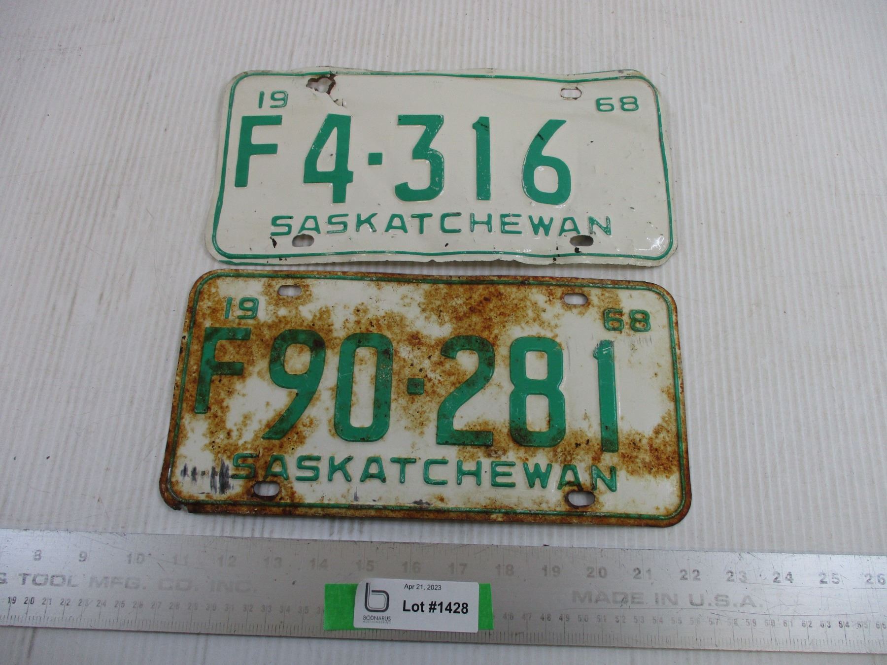 (2)1968 Saskatchewan License Plates #F4-316 & F90-281