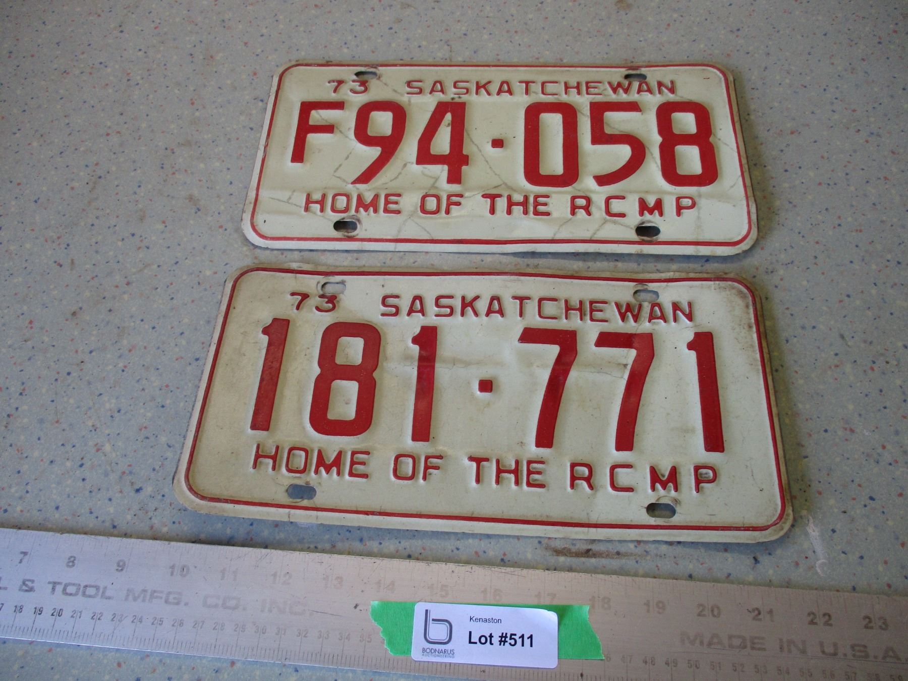 (2) 1973 Saskatchewan License Plates - Home of the RCMP