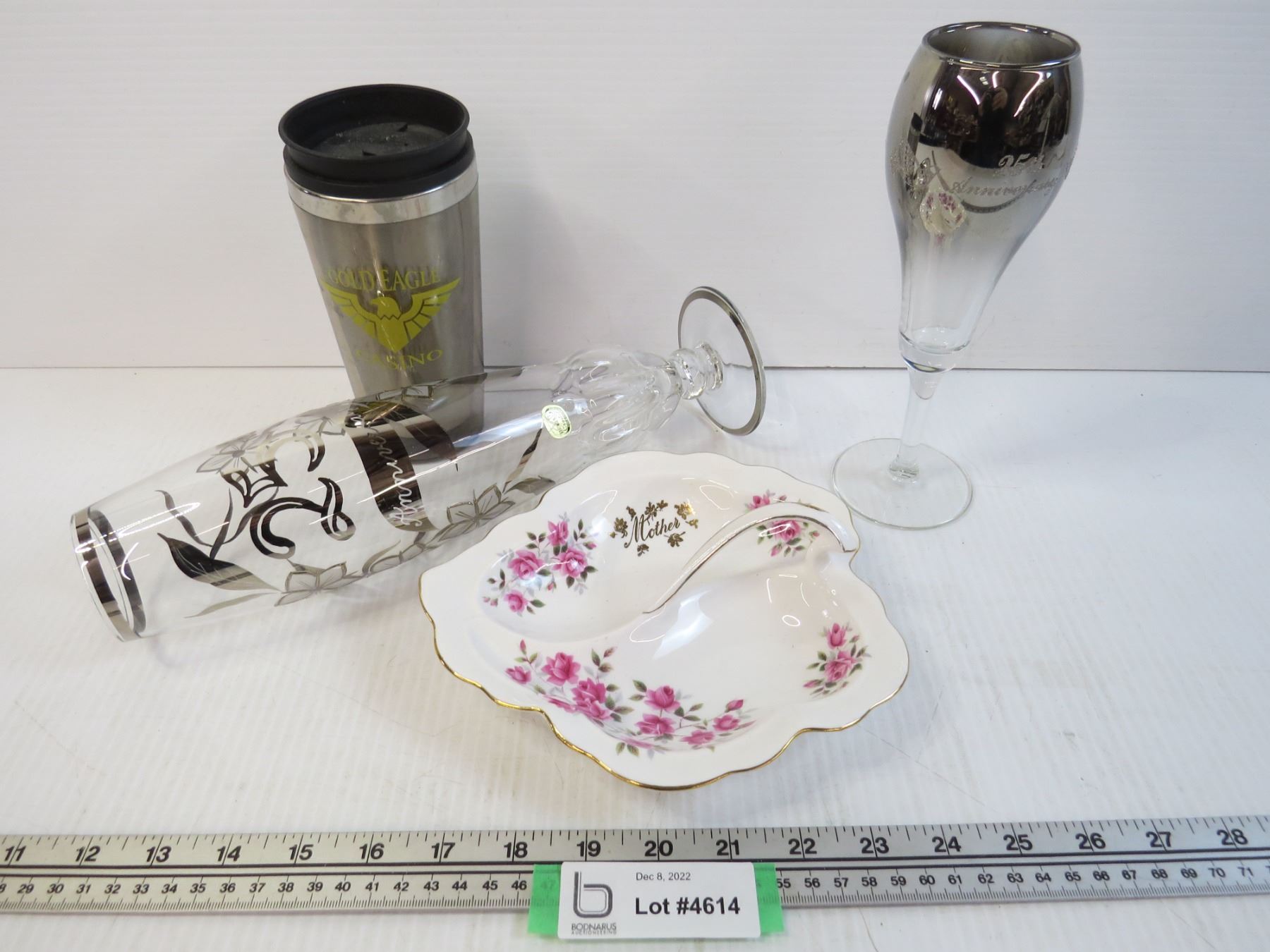 (2) 25th Anniversary Glasses - Drinking Bottle - Mother Dish (Royal Albert)