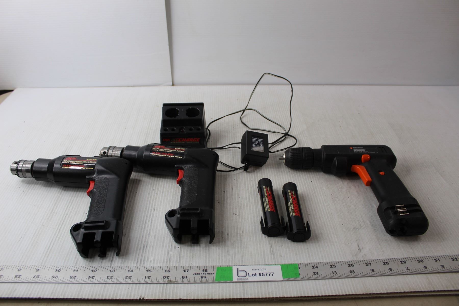 (2) 3/8" Skil Cordless Drills/Drivers, (2) Batteries & Charger- Powers On, Black & Decker 6V Drill