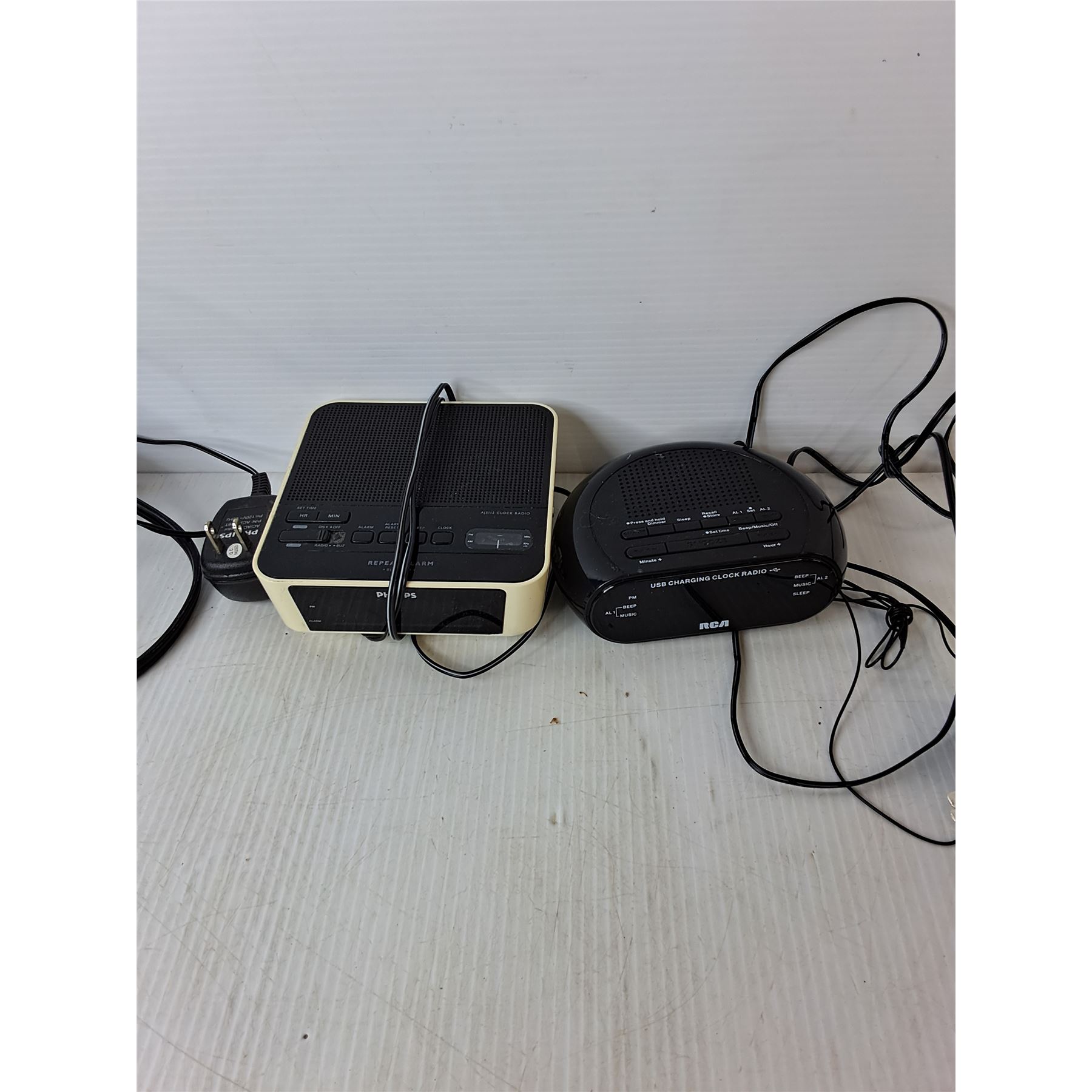 (2) Alarm Clocks RCA, Philips, Conair Hair Dryer All Powers On