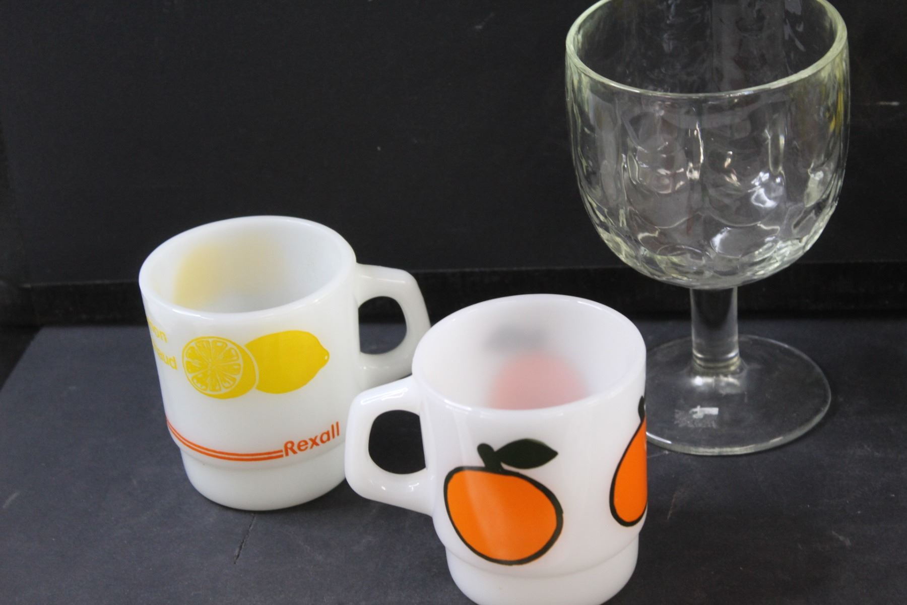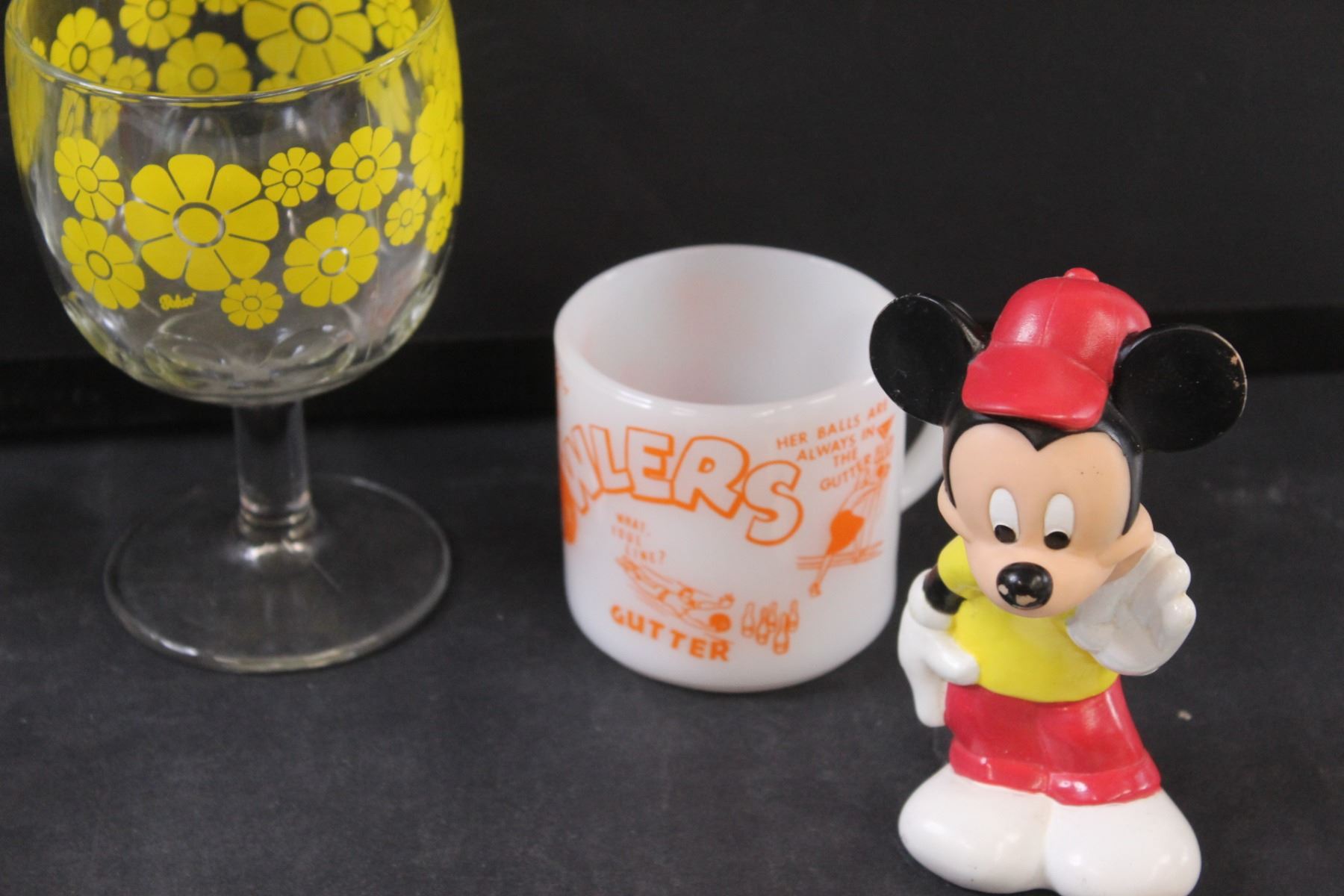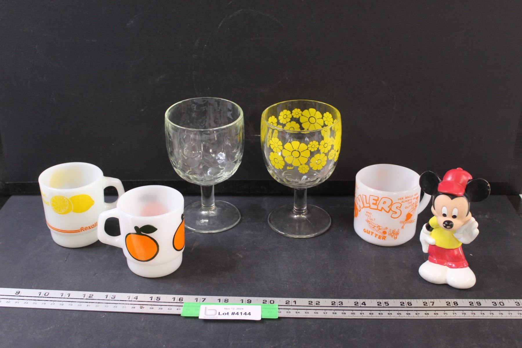 (2) Antique Bartlett Collins Goblets, (3) Vintage Mugs, Mickey Mouse Figurine