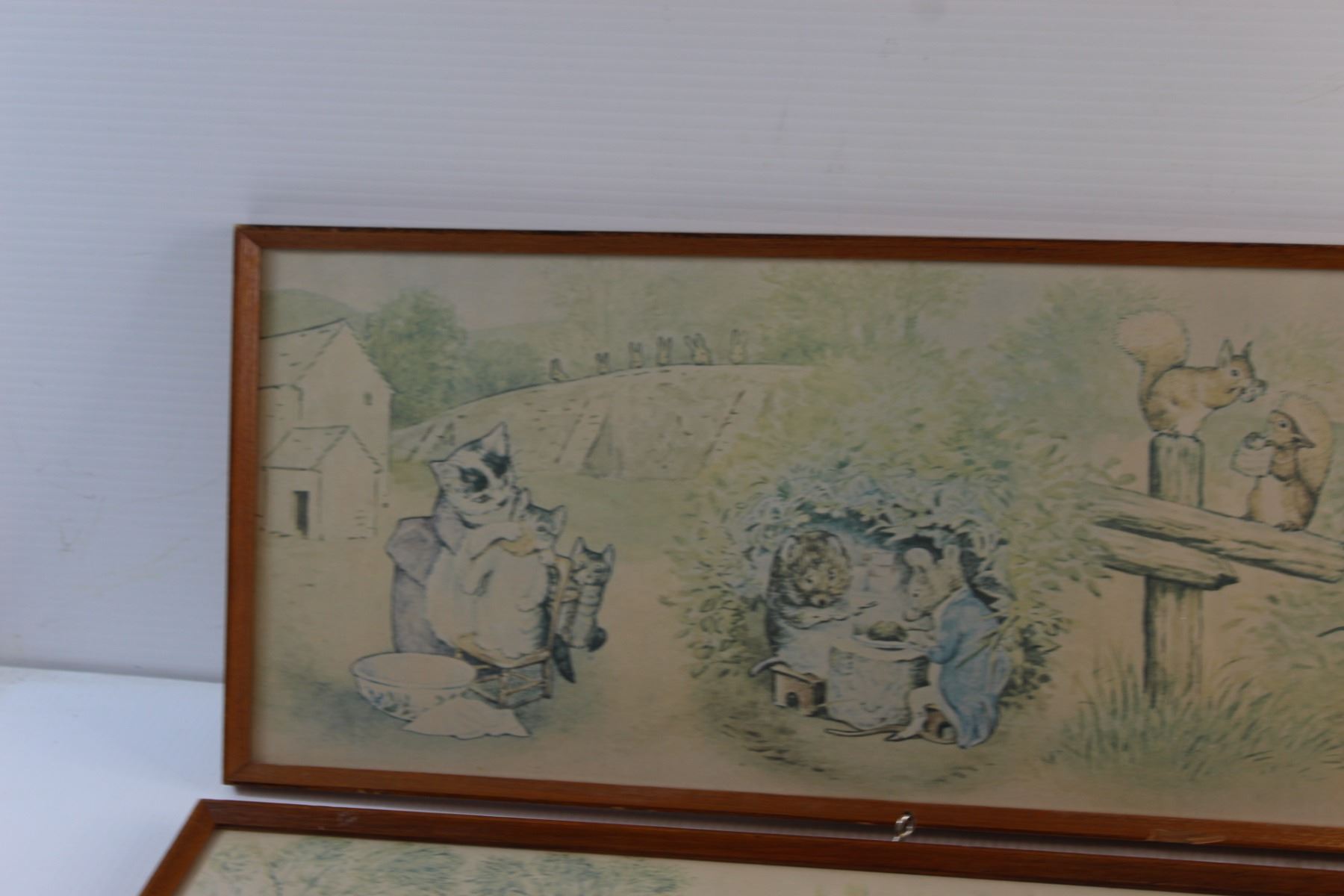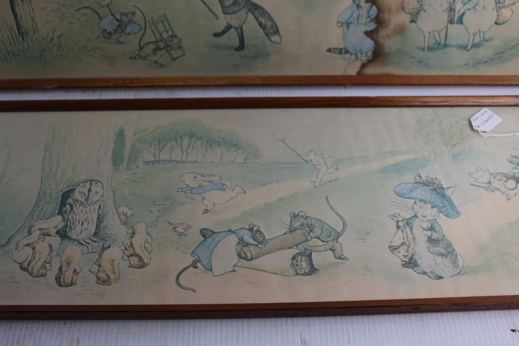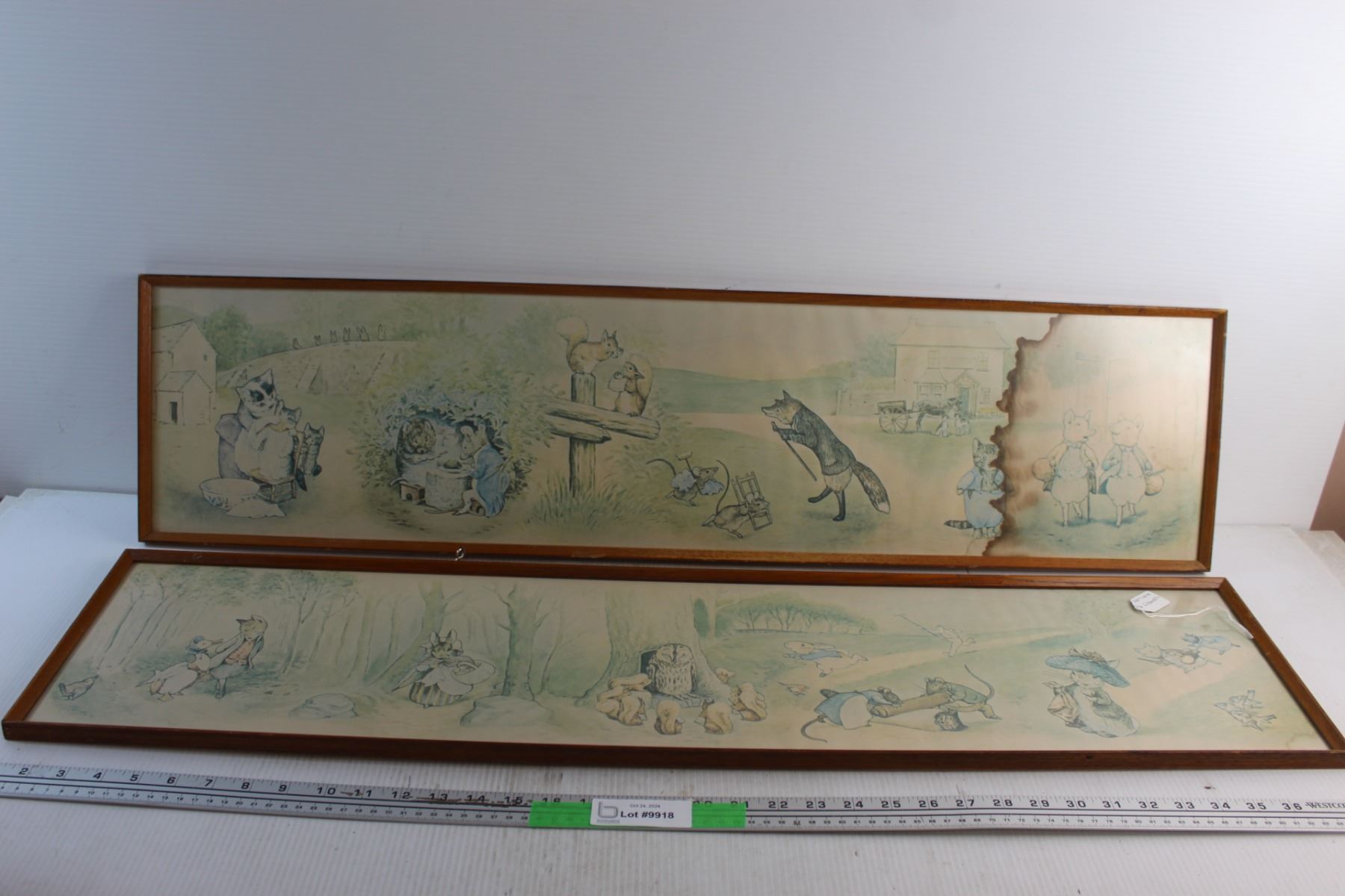 (2) Antique Framed Wildlife Prints 38'' x 10'' - Some Water Damage